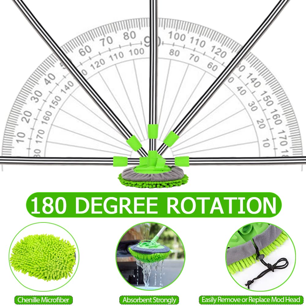 - 【Poste flexible de rotación y extensión】Esta fregona de diseño de acero inoxidable no solo puede extenderse 120 cm de largo, sino que también cuenta con una cabeza que tiene un ángulo de 180 grados para la limpieza. Esta fregona para lavado de autos puede alcanzar lo mejor posible para autocaravanas, automóviles, SUV o camiones. Es la mejor opción para la limpieza de parabrisas, llantas y pintura de automóviles