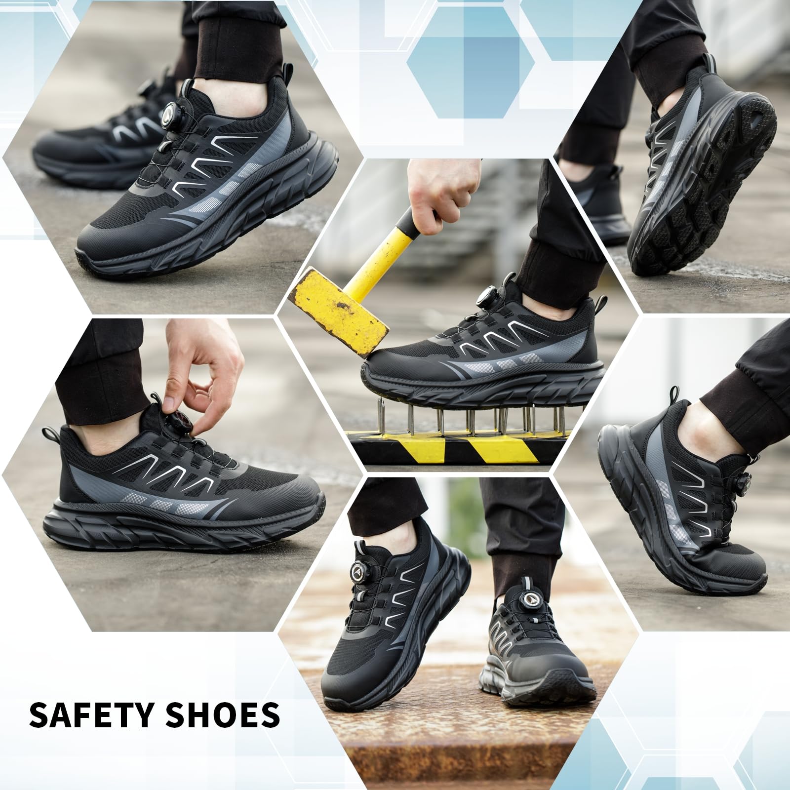 - Material exterior: Diseño moderno y práctico: Nuestros zapatos de seguridad que incorporan un diseño único, mezclando la funcionalidad con la moda.Nuestros zapatos no sólo se ven de moda y único, pero también sorprendentemente ligero, reduciendo la fatiga del pie y que le permite moverse libremente a lo largo de su jornada de trabajo.