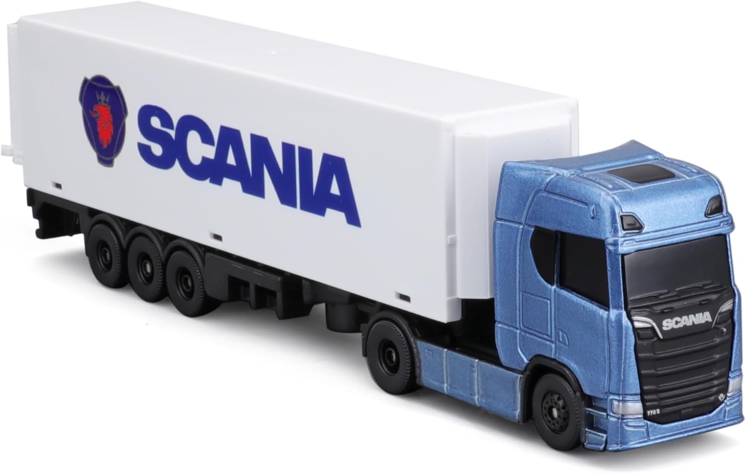 Bburago - 1/72 Camiones + Remolque - Surtido 4 Modelos aleatorios Camiones de Metal a Escala 1/72ª con Remolque Scania y Volvo. Surtido de 4 Modelos aleatorios