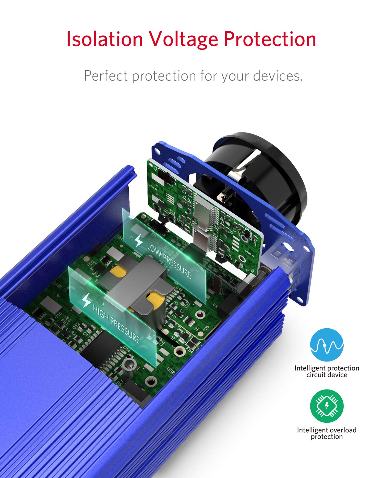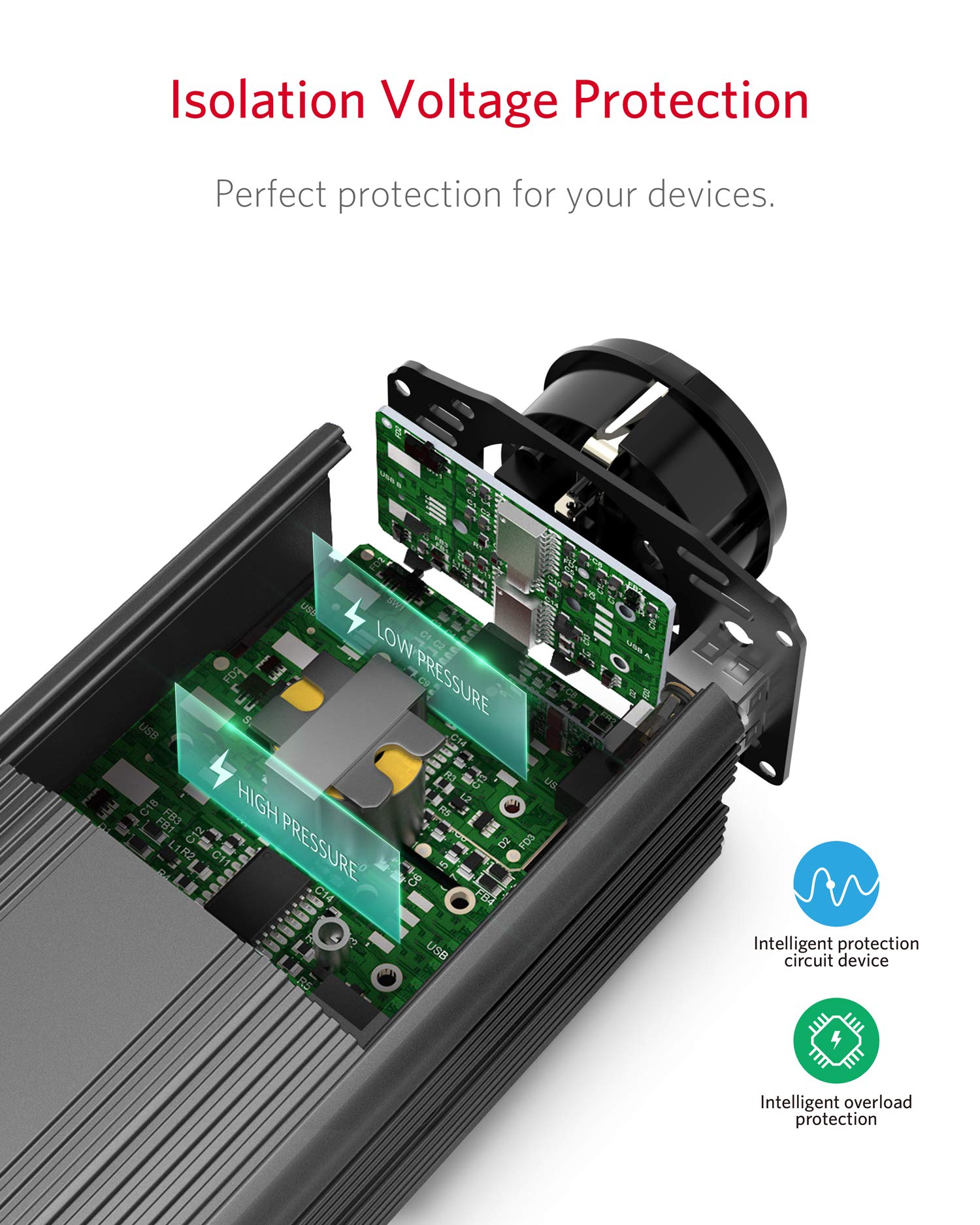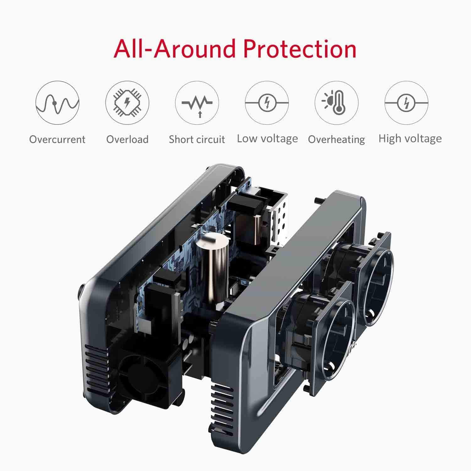 - [Protecciones Multi] Protección contra cortocircuitos, sobrecarga, bajo voltaje, sobrecalentamiento; Retardo de salida; Función Soft Start (recuperará automáticamente); usible y ventilador de refrigeración integrado.