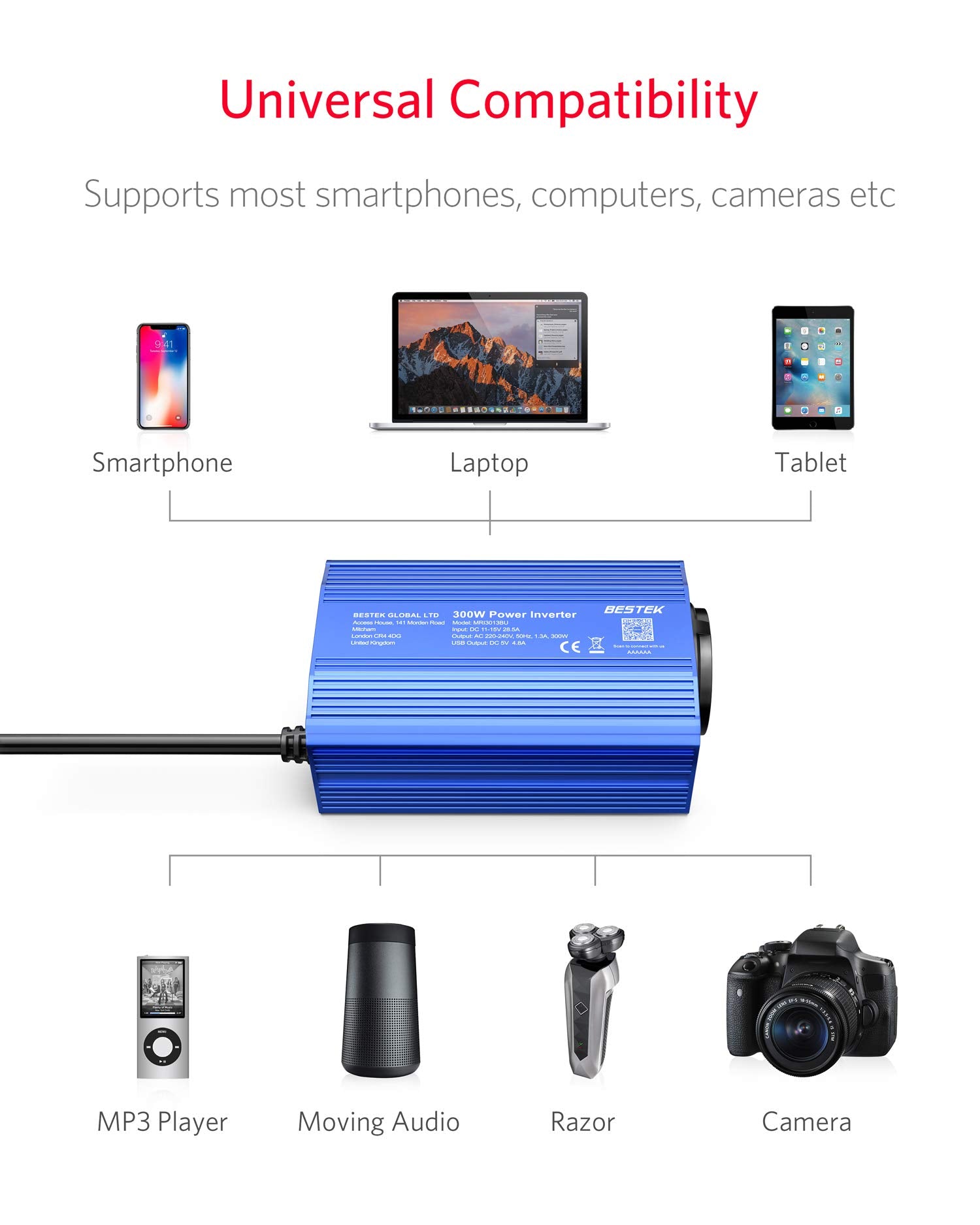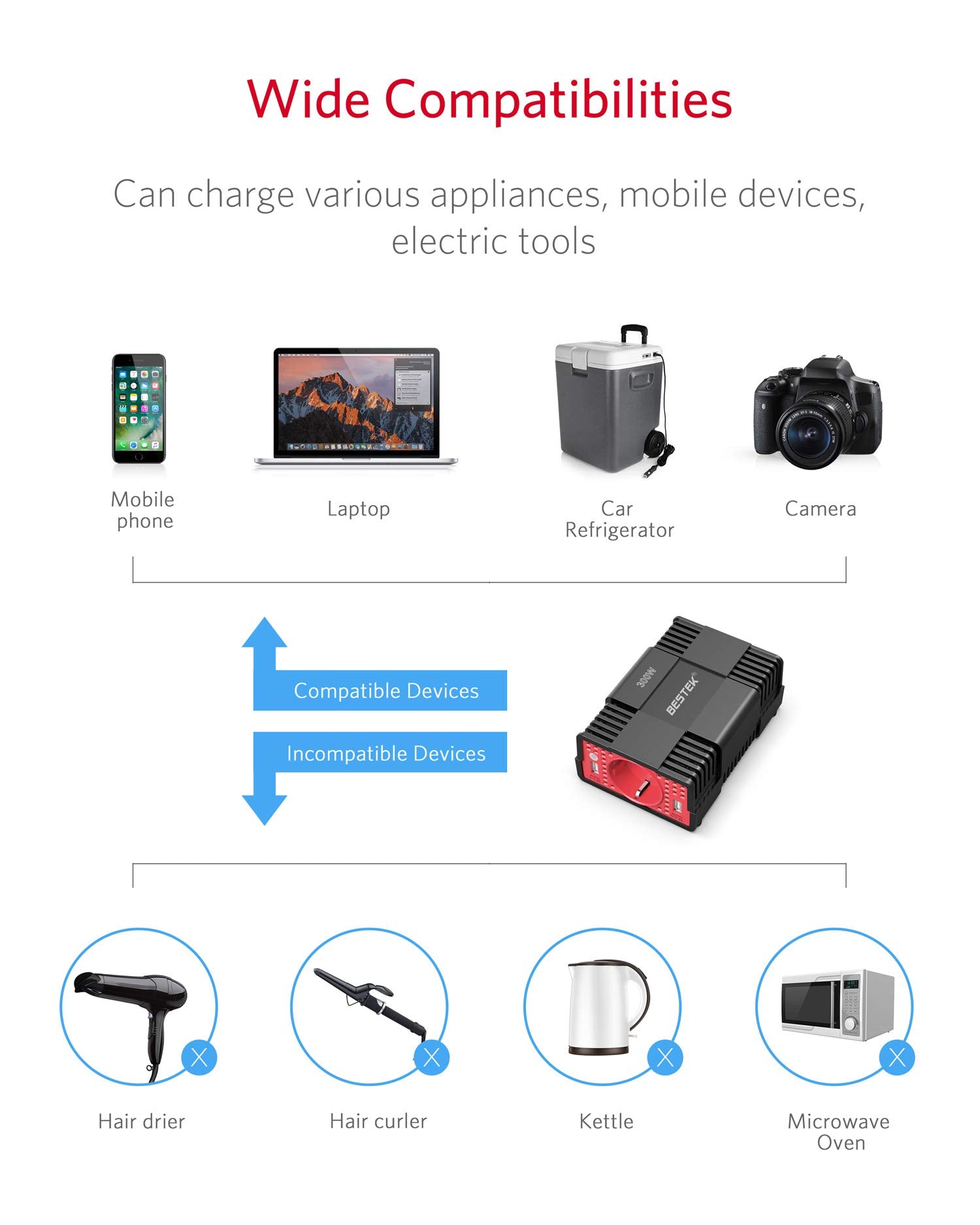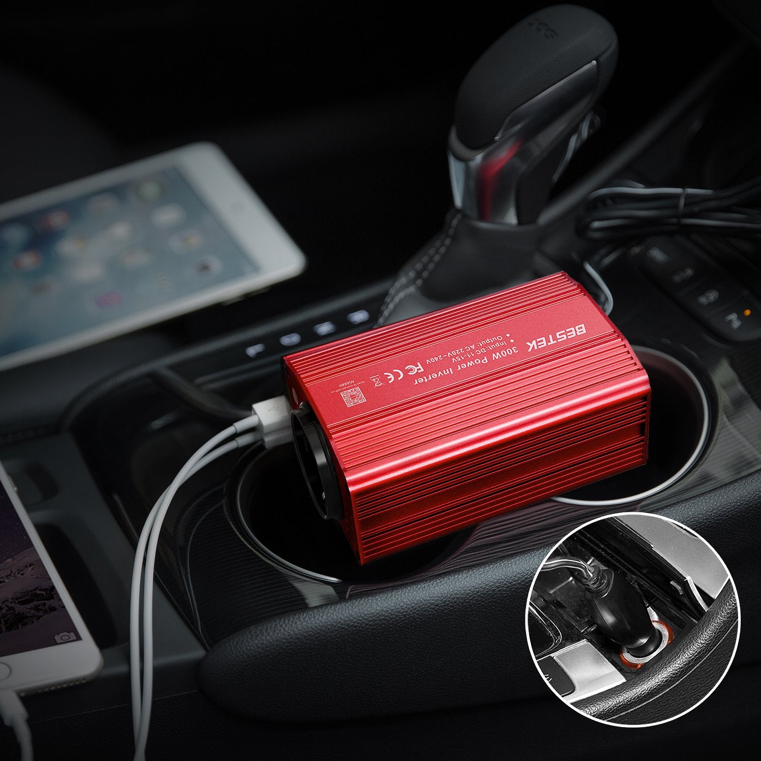 - [Atención] BESTEK es una marca registrada de los Estados Unidos, European Union y nuestro único distribuidor autorizado es BESTEK. Tenga cuidado para evitar comprar estos CONVERTIDORES de otros vendedores, garantía 100% original de BESTEK. Venta no autorizada sin autorización, investigaremos la responsabilidad legal. Lista de paquetes: 1 convertidor de corriente, 1 cable con la toma de encendedor de coche (80 cm), 1 manual de usuario en francés.