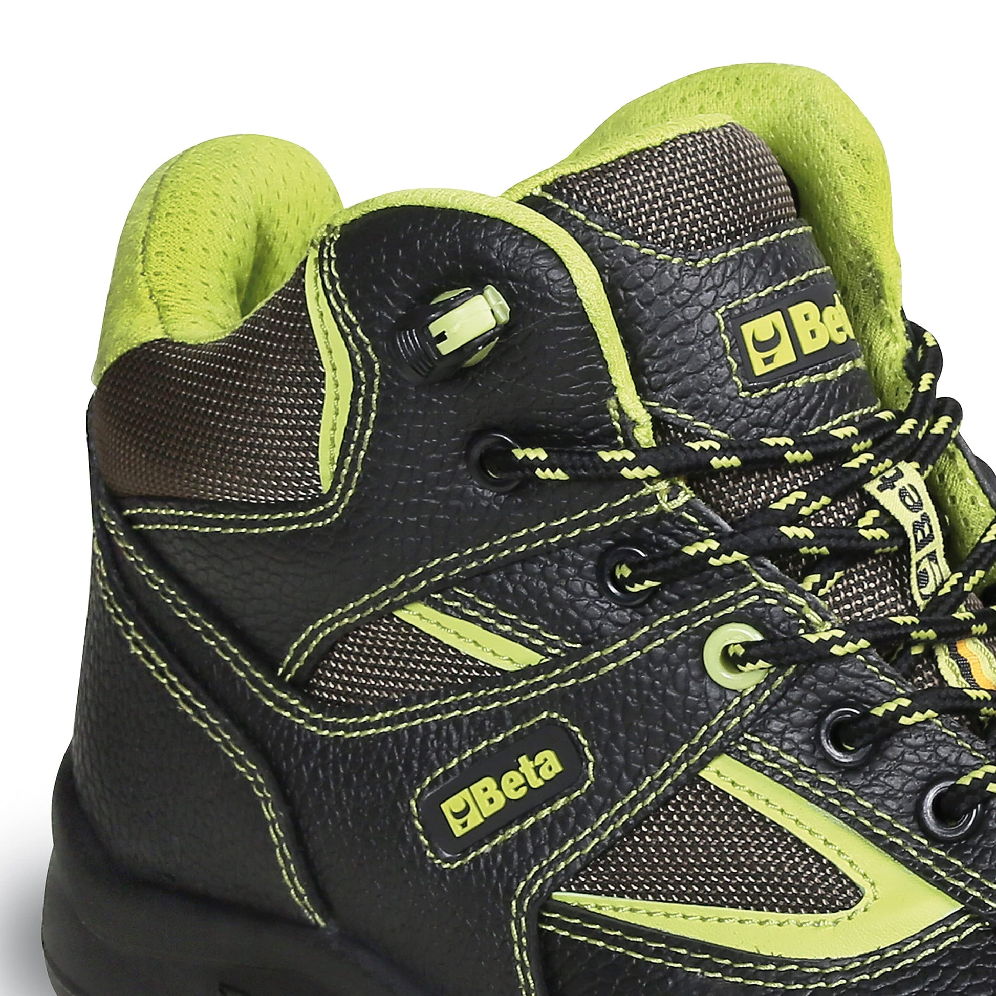 - CALZADO DE SEGURIDAD: Calzado de seguridad para trabajar alto con parte superior de piel hidrófuga e inserto resistente a la abrasión en la zona de los dedos. Suela antideslizante y resistente a la flexión repetida