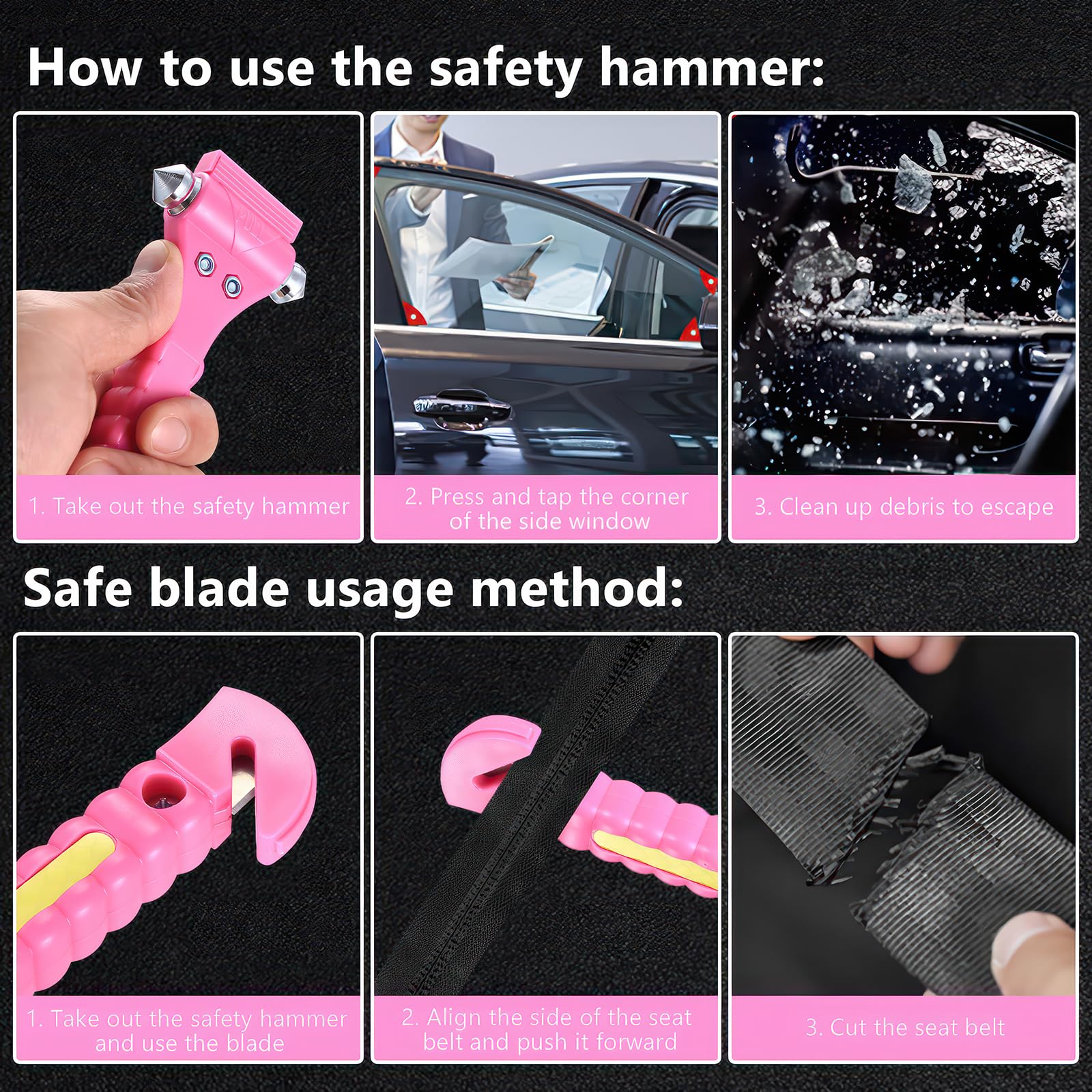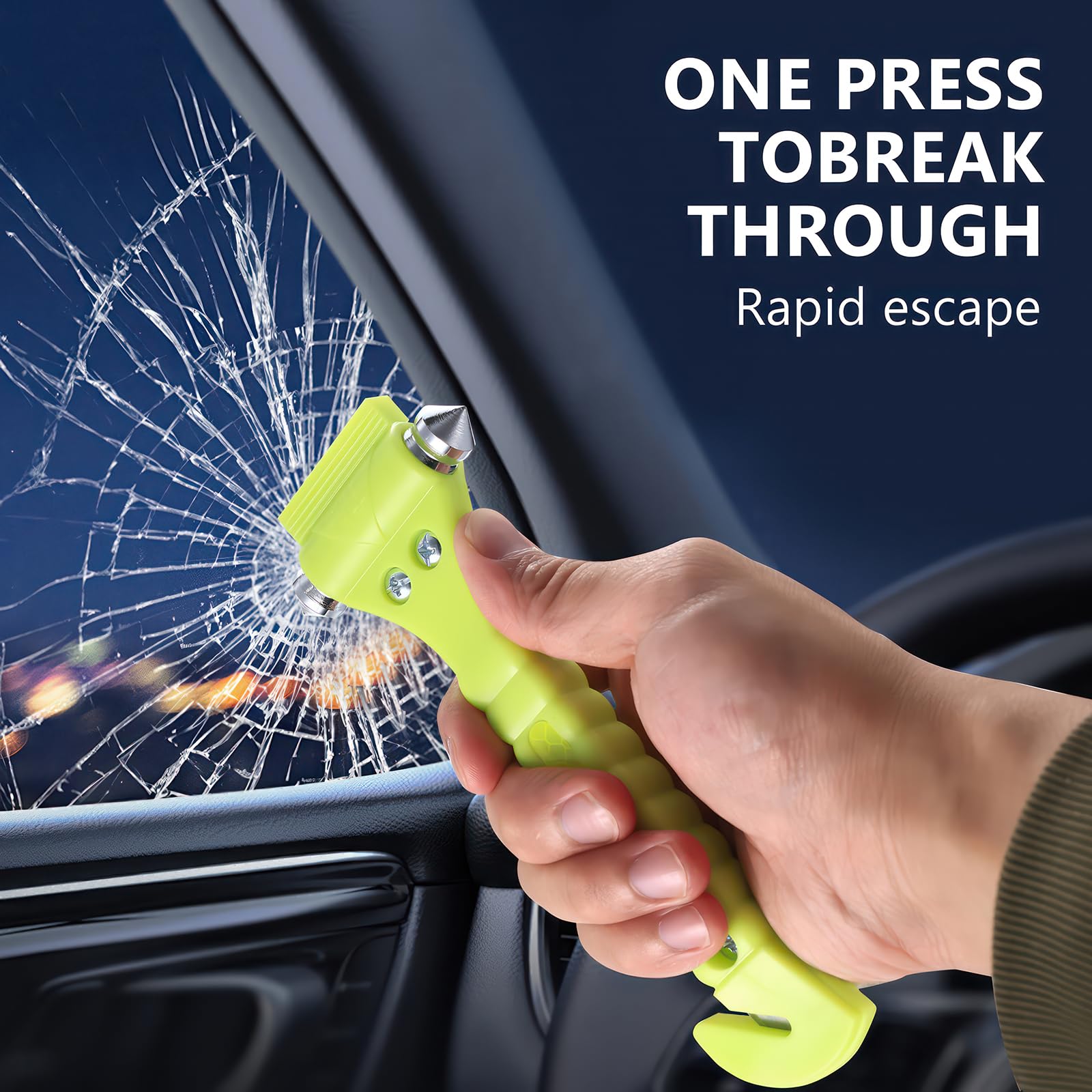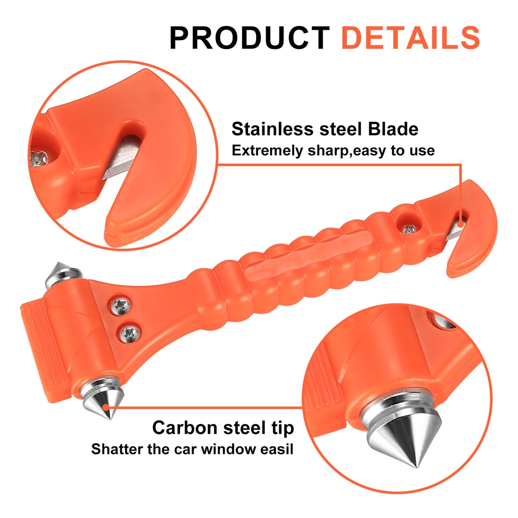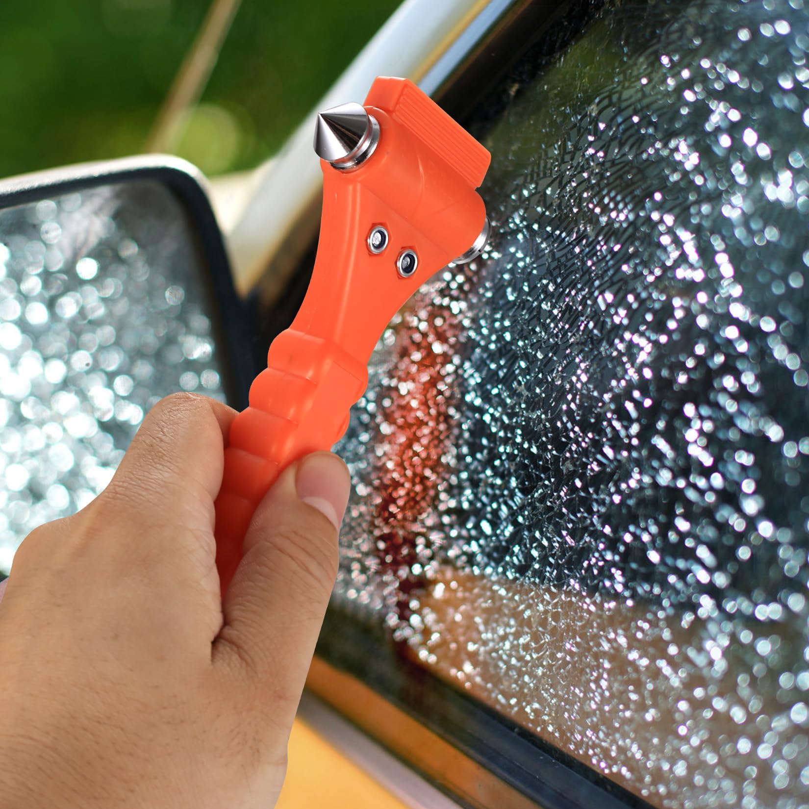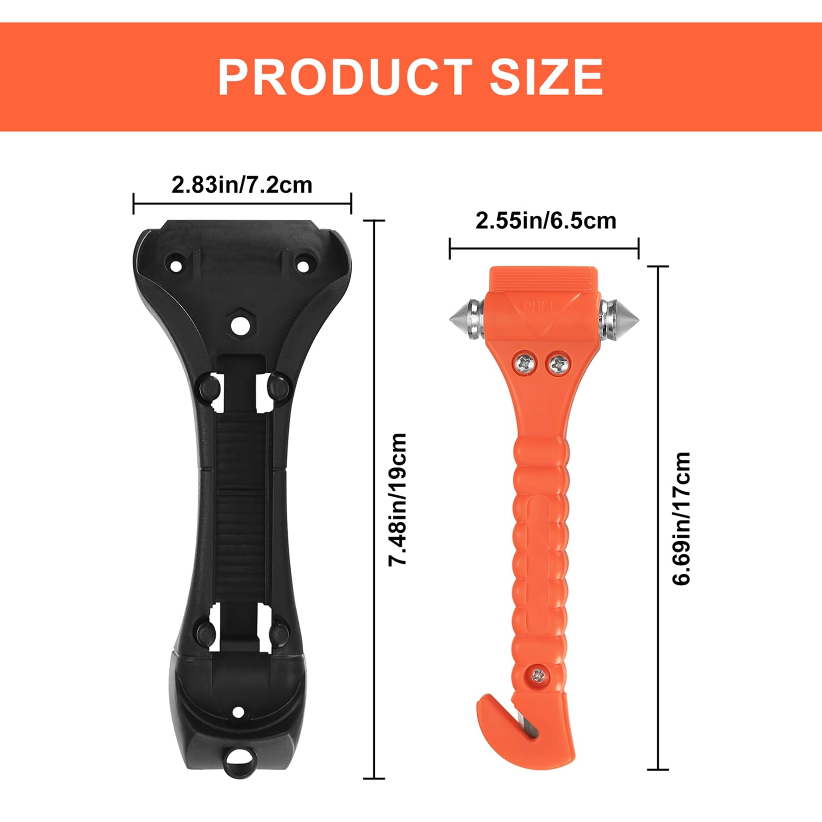 - Martillo de emergencia 2 en 1 para el auto: El sólido cabezal de martillo de acero al carbono sirve para romper los cristales durante una emergencia o accidente, mientras que el extremo con la hoja afilada se utiliza para cortar cinturones y liberar a los pasajeros. Nota: Las esquinas de las ventanas laterales son más propensas a agrietarse que los parabrisas.
