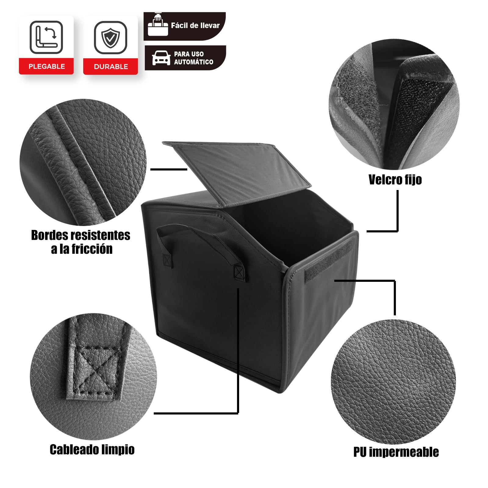 Enerfero Organizador de Maletero Plegable de PU – Caja de Almacenamiento Multiuso para Coche, SUV y Camión – Gran Capacidad (PU)