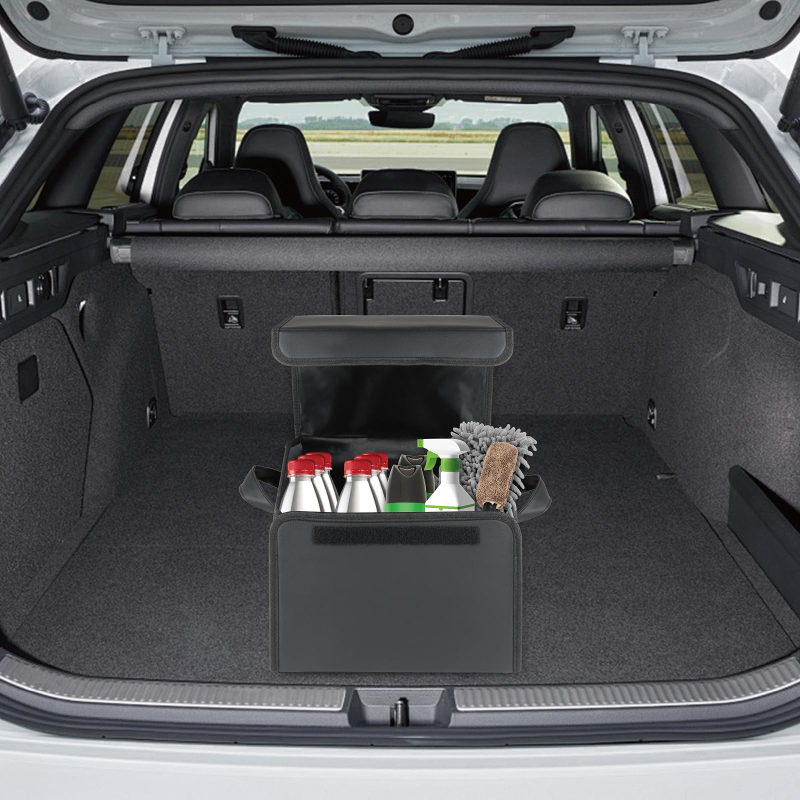 - "【Ahorro de espacio y almacenamiento eficiente】 Diseño plegable, este organizador de maletero ofrece una gran capacidad de almacenamiento cuando está desplegado y se pliega fácilmente cuando no lo necesitas. Gracias a su diseño compacto y funcional, te ayuda a optimizar el espacio en el maletero, manteniendo tu coche ordenado y sin objetos sueltos. Ideal para cualquier conductor que busque una solución práctica y eficiente."