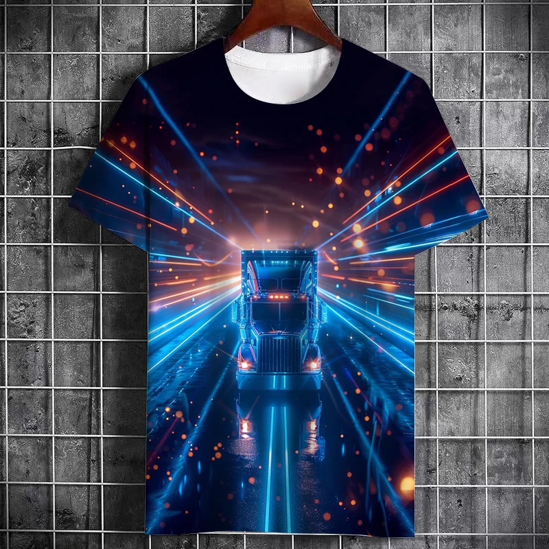 Fashion Summer Truck Pattern Printed Men's Cool T-Shirt New Creative Large Size Leisure Truck Driver Short Sleeve Quality Top