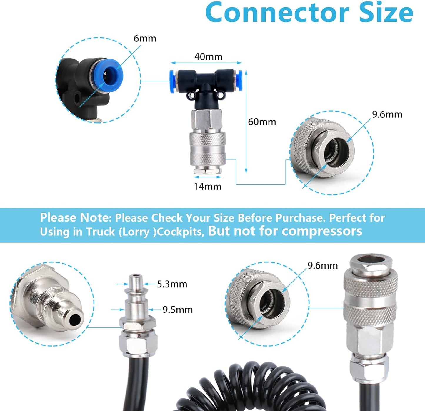 - 【Fácil de usar】Se adapta a la manguera de aire 1/4 "(6mm) OD en el asiento de aire. Sin ninguna herramienta, puede conectar fácilmente esta pistola de polvo de aire de camión con la manguera de aire (OD 6mm) en el camión