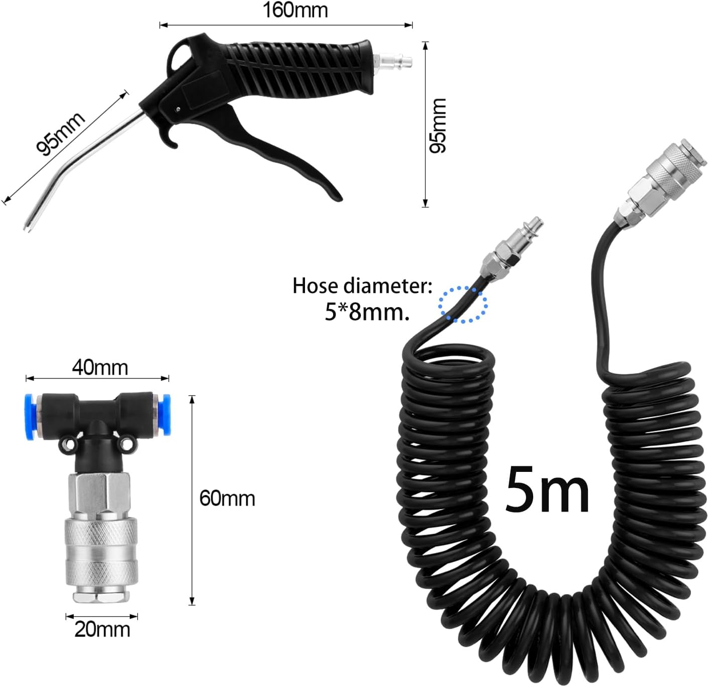 Fippy Pistola de Aire para Camiones con Manguera de Retroceso de 5 Metros(5 * 8mm), Pistola de Plumero de Aire para Camiones con Conector, Negro