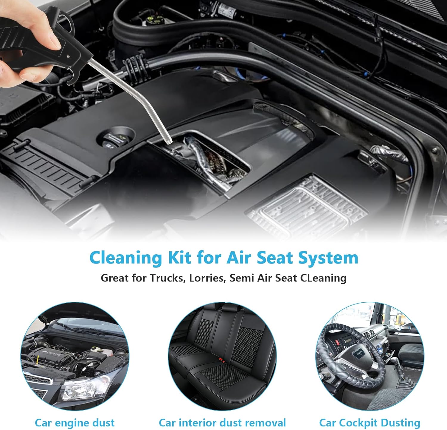 - 【Kit de limpieza para cabina de camión】Este kit de pistola de soplado de aire está diseñado para la limpieza eficiente y fácil de la cabina de camiones, remolques, tractores, cabinas, coches, etc.
