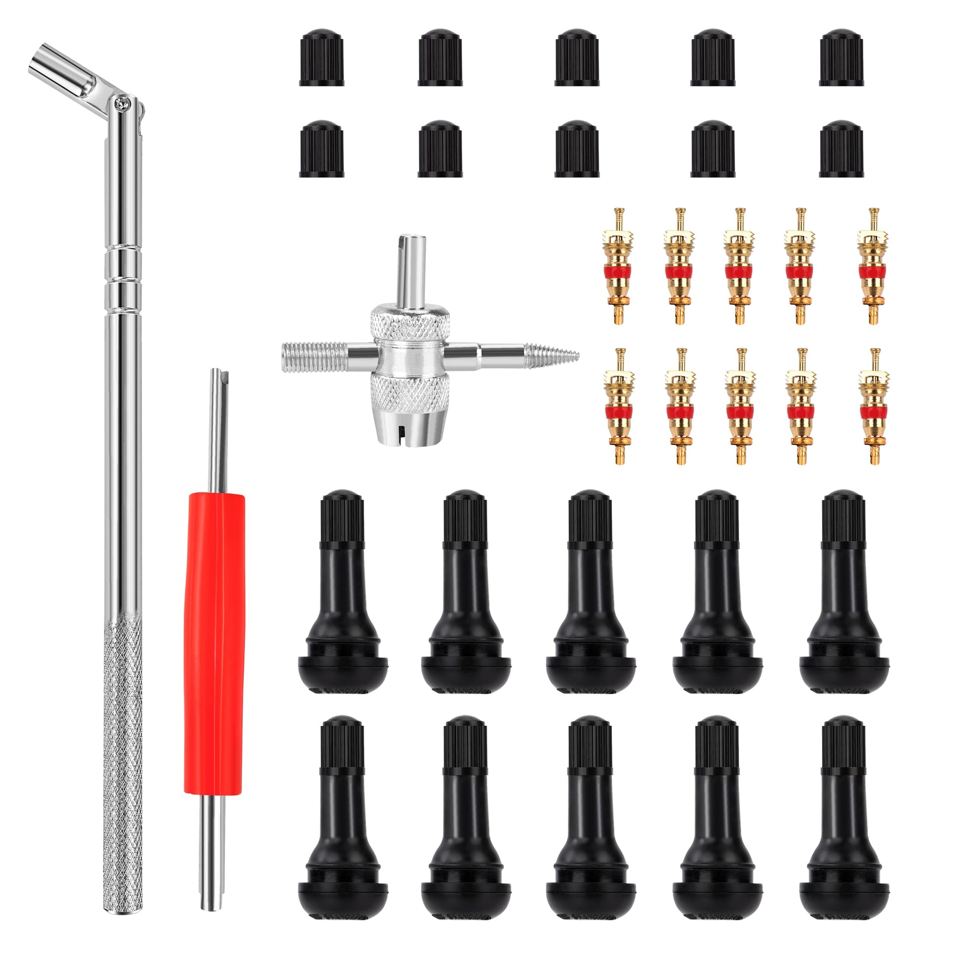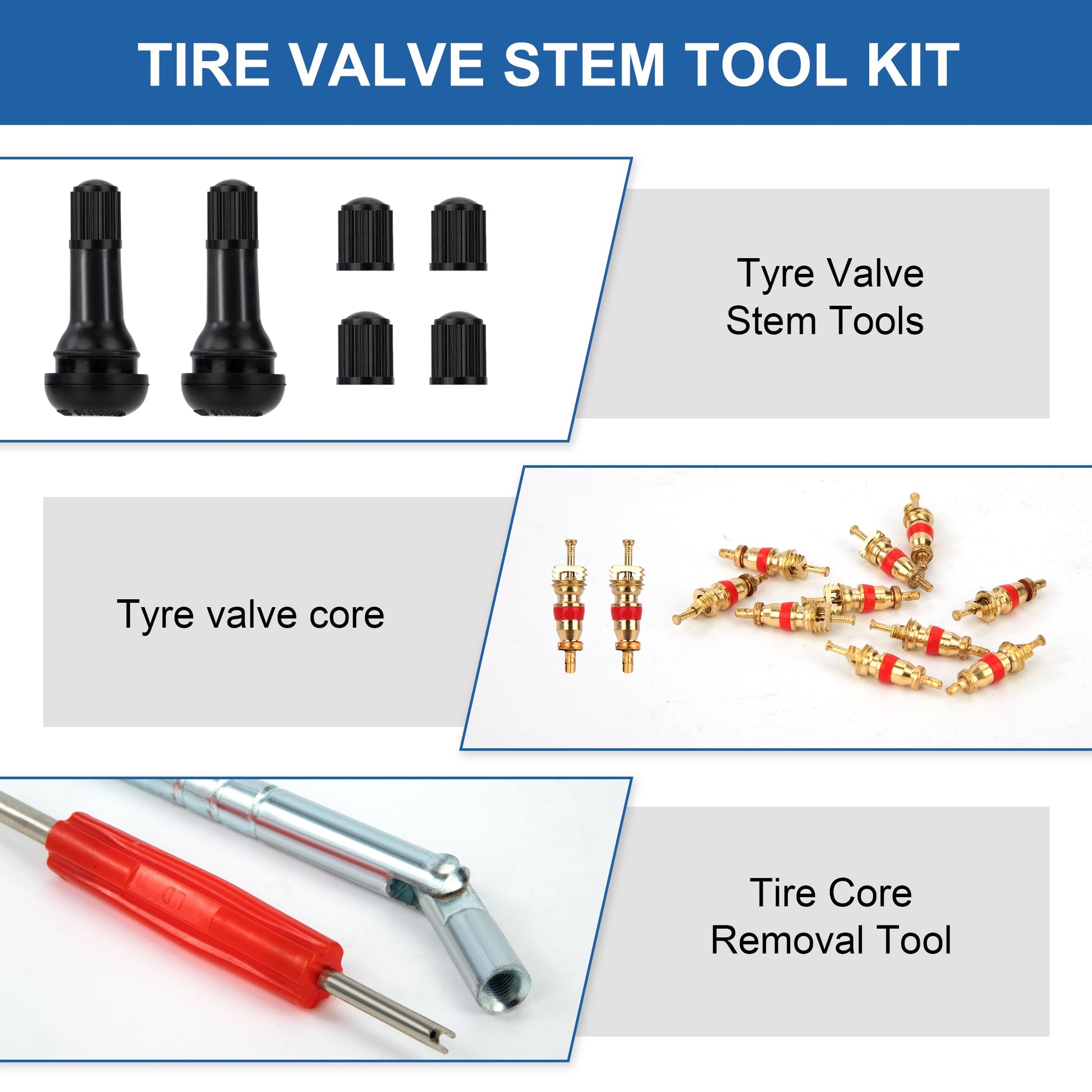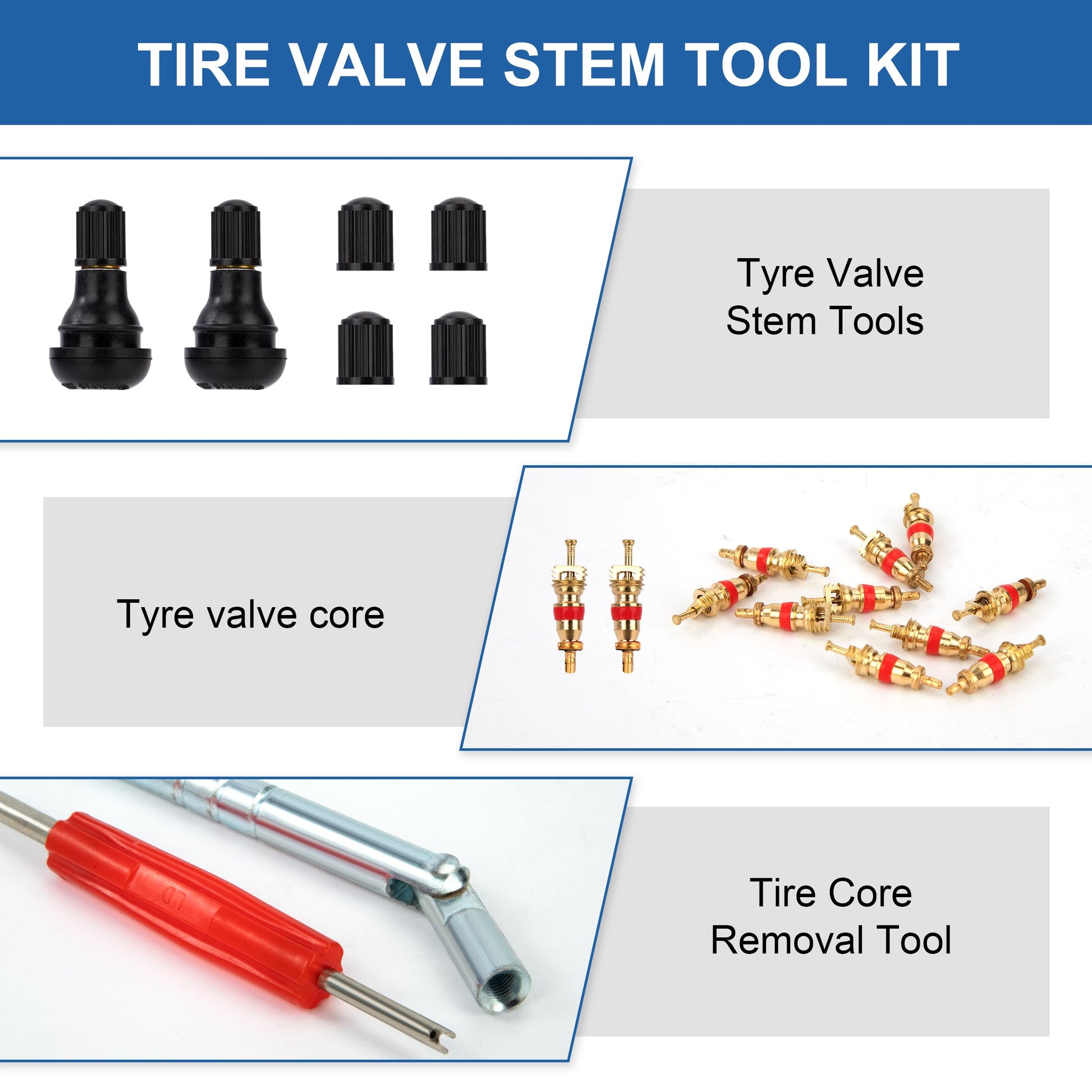 - 【Juego Herramientas Extracción Válvulas Neumáticos】El kit de extracción de válvulas de neumáticos incluye 1 extractor de vástago de válvula, 1 extractor de núcleo de válvula de doble cabeza, 1 núcleo de reparación de válvula de 4 vías, 10 vástagos de válvula de goma negra, 10 núcleos de válvula, 20 tapas de válvula. , cubriendo todos los componentes necesarios para un trabajo de reparación completo y eficiente.