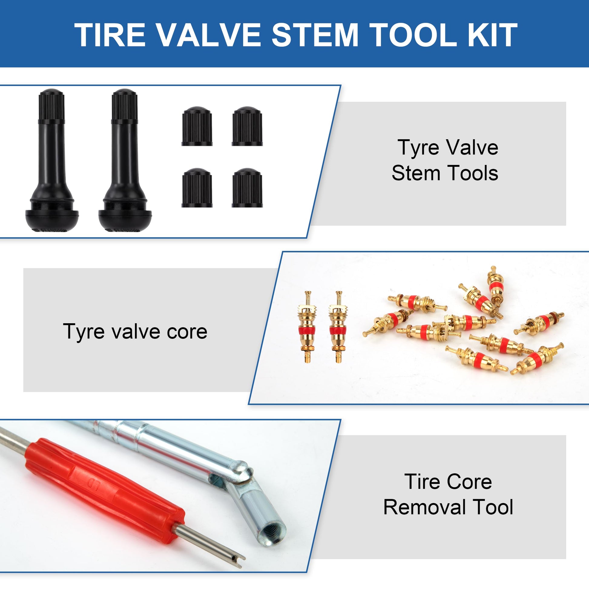 - 【Amplia Aplicación】El kit de reparación de válvulas de neumáticos es adecuado para cualquier automóvil, camión, motocicleta, bicicleta, cortadora de césped y vehículo todo terreno. Núcleo de válvula universal, compatible con vástagos de válvula sin cámara para bicicletas de carretera y de montaña, que satisface una amplia gama de necesidades de mantenimiento.