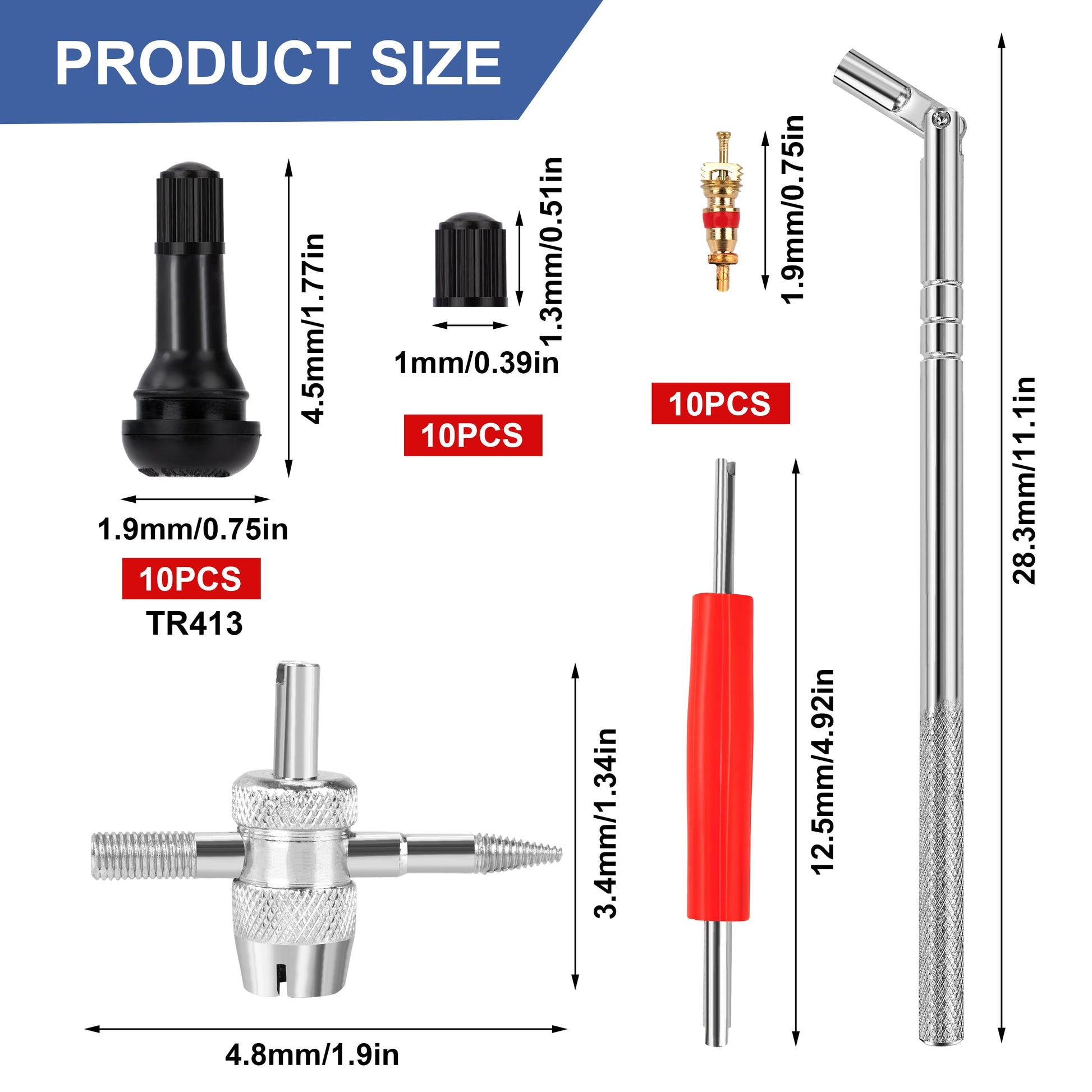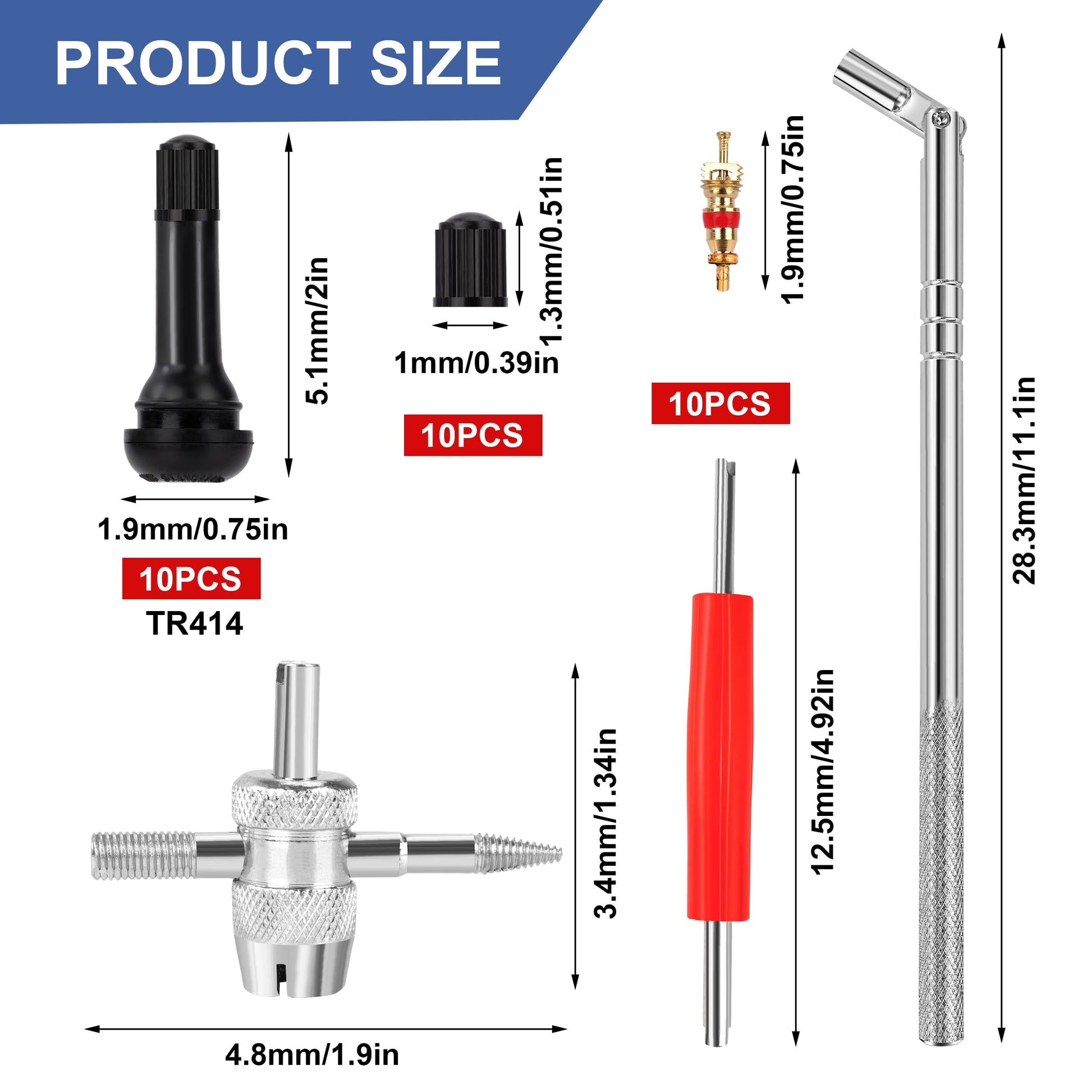 Herramienta de Extracción Válvula Neumáticos 43 Piezas, Removedor de Válvula Set con Válvula TR414 para Automóviles Motocicletas Camiones Vehículos