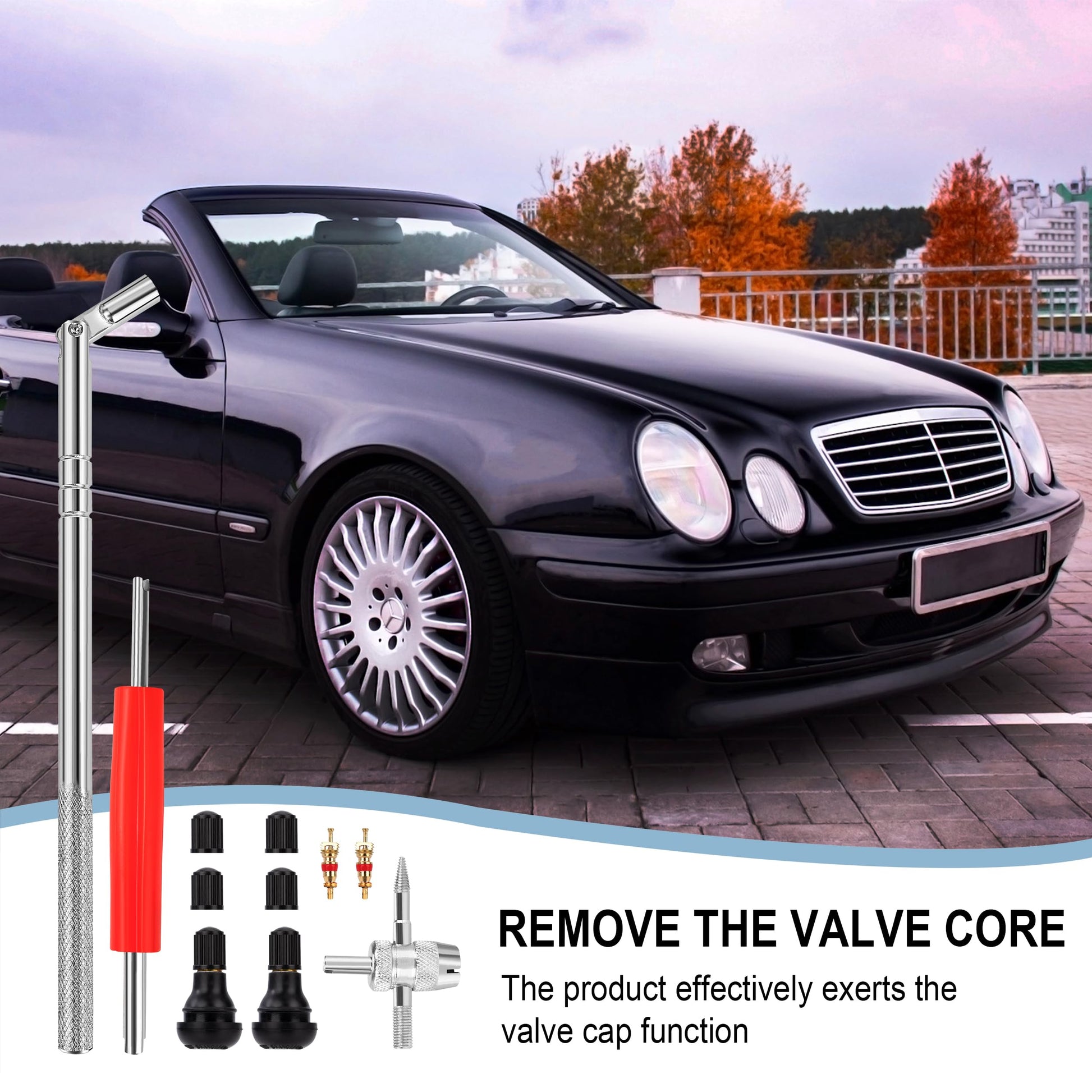 1.Removedor de Núcleo Válvula Doble Cabezal: El kit de herramientas de extracción de núcleo de válvula de doble cabezal elimina y reemplaza fácilmente los núcleos de válvula de varios neumáticos, compatible con diferentes tamaños para un uso versátil.