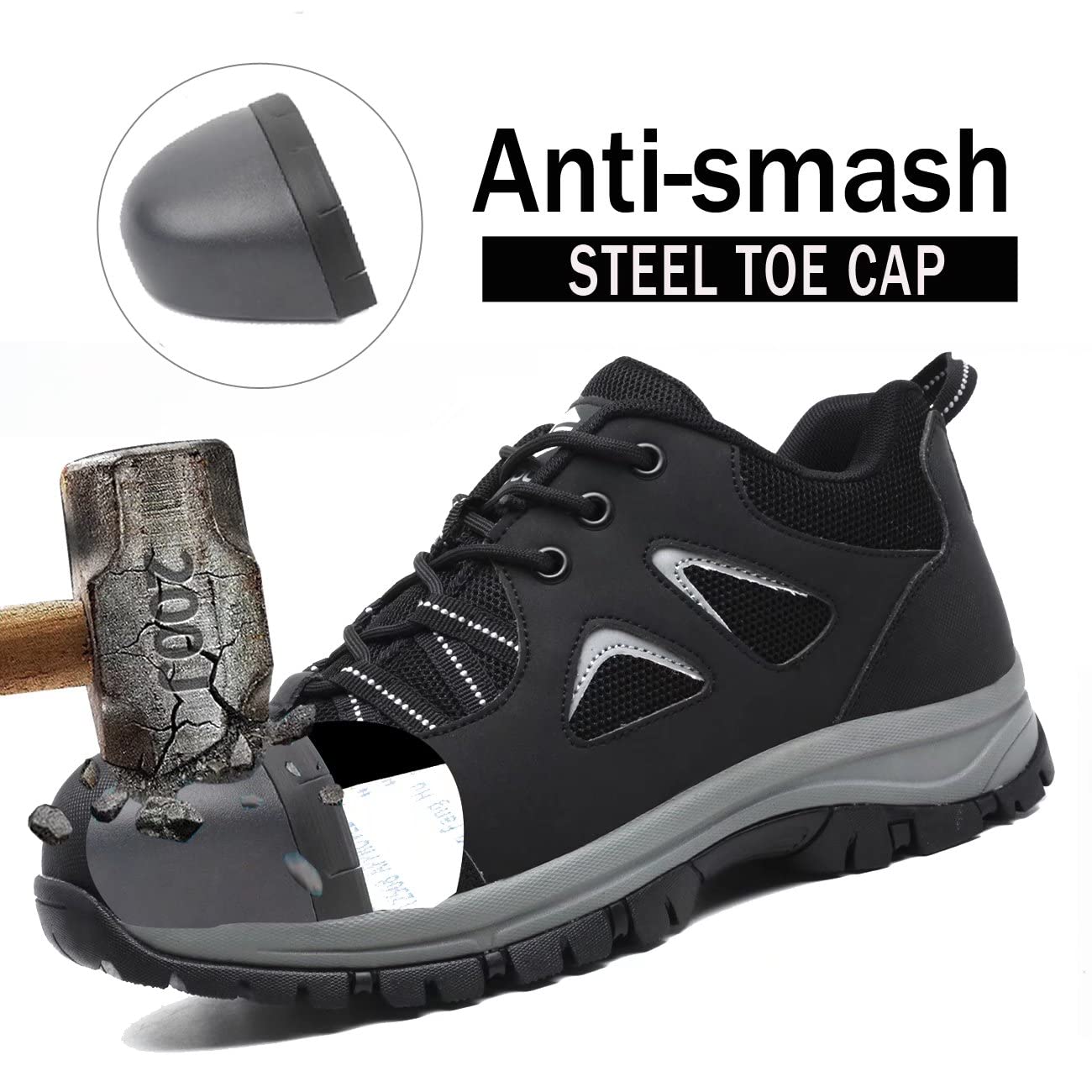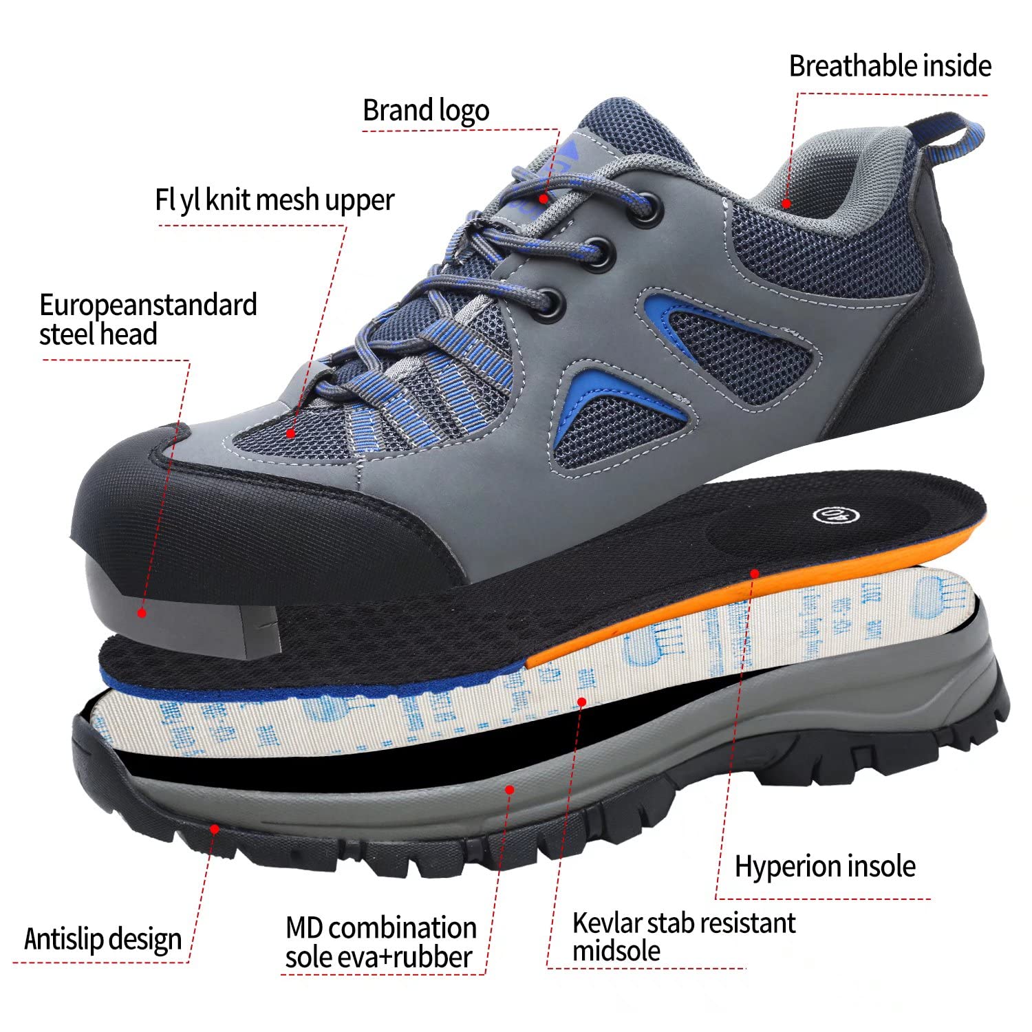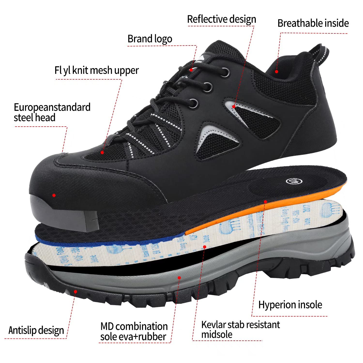 - Ligeros y Transpirables:El Zapatillas de Trabajo hecho de malla superior es transpirable y cómodo. Este par de calzado de seguridad es liviano y cómodo y mantiene sus pies cómodos incluso cuando se usa todo el día