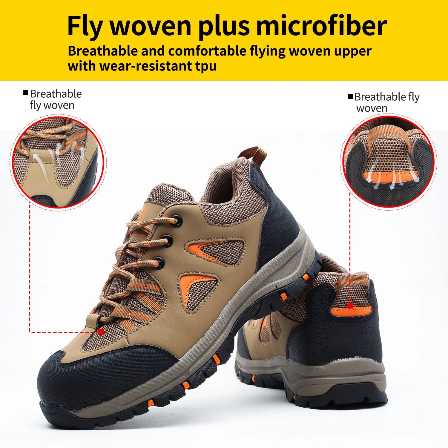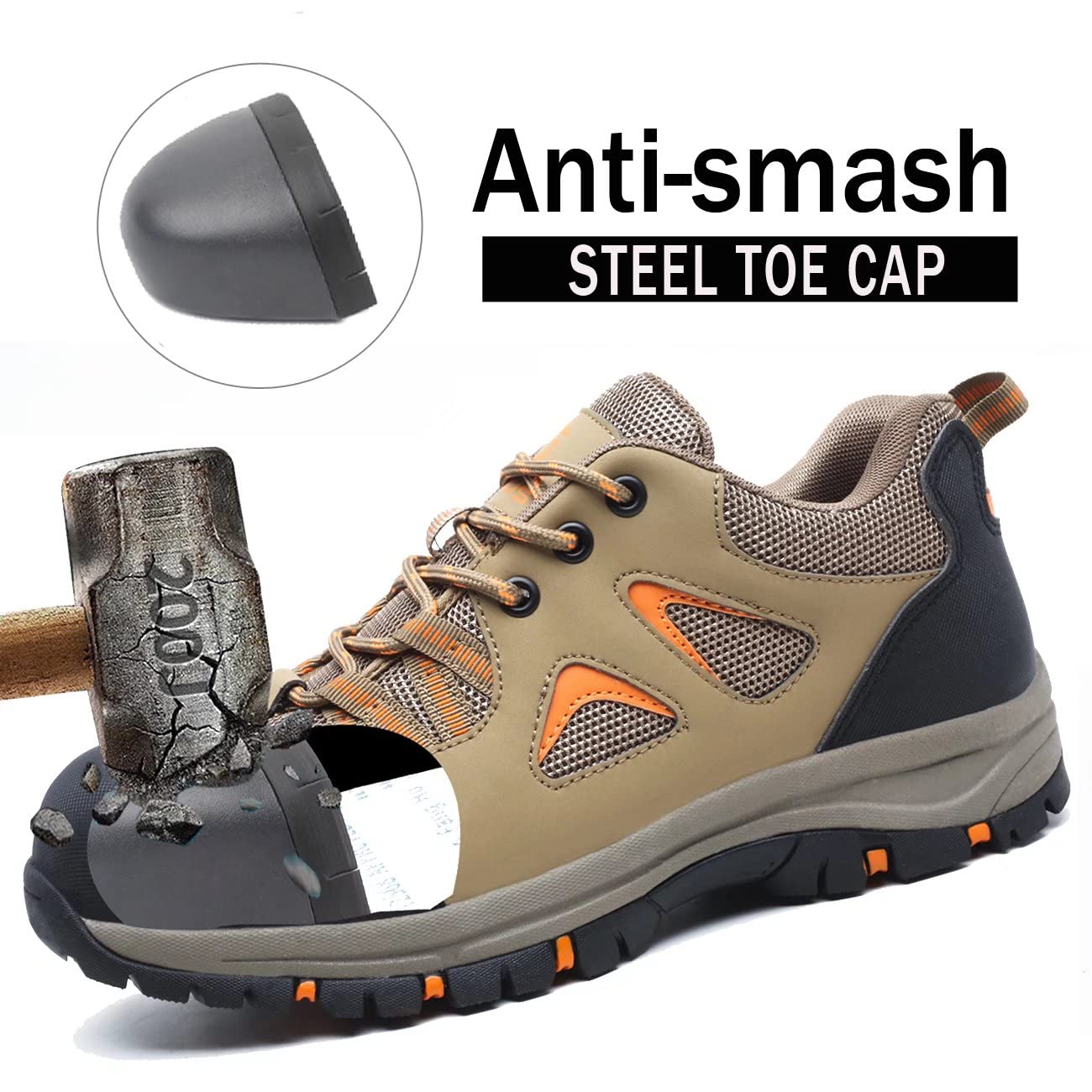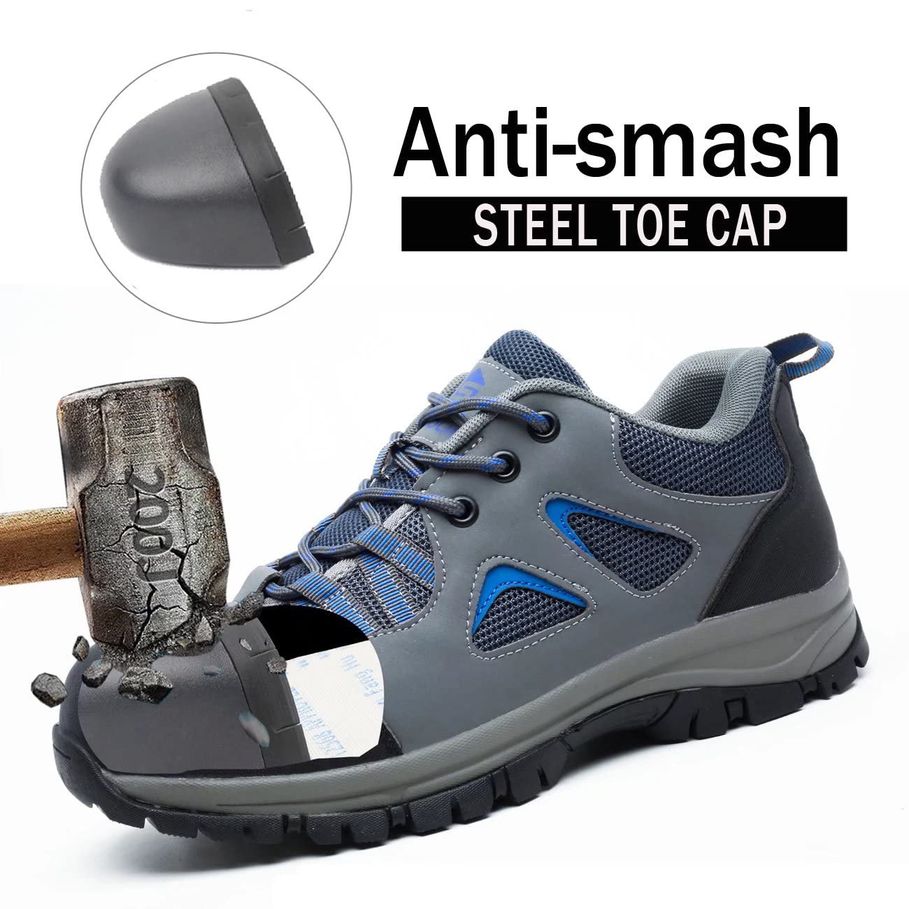 - Ligeros y Transpirables:El Zapatillas de Trabajo hecho de malla superior es transpirable y cómodo. Este par de calzado de seguridad es liviano y cómodo y mantiene sus pies cómodos incluso cuando se usa todo el día