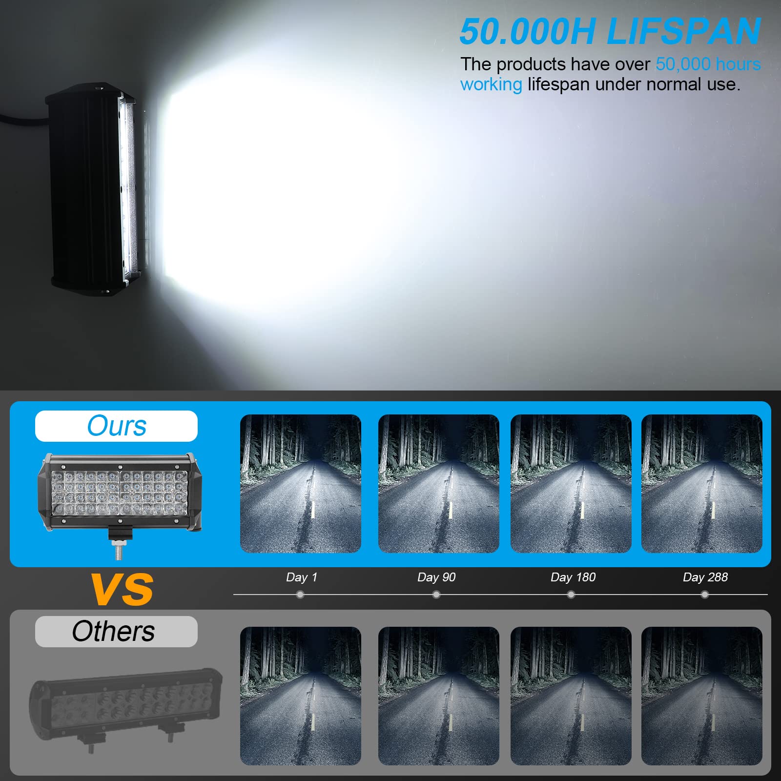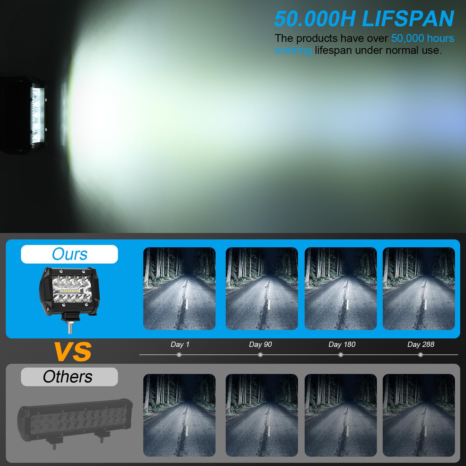 - 【Disipación de Calor Eficiente】 - Las aletas térmicas finas de la cena garantizan una disipación de calor efectiva. Los disipadores de calor de aleación de aluminio de alta calidad maximizan el área de superficie para un enfriamiento óptimo. Si usa foco trabajo led 12v kraumi durante 5 horas, aún puede tocar la carcasa sin que sea incómodo.