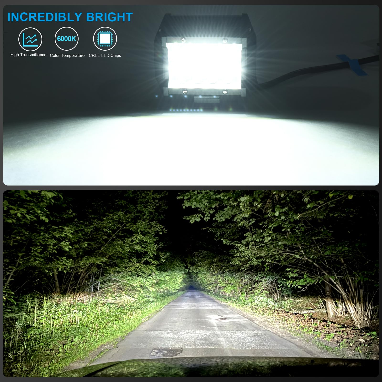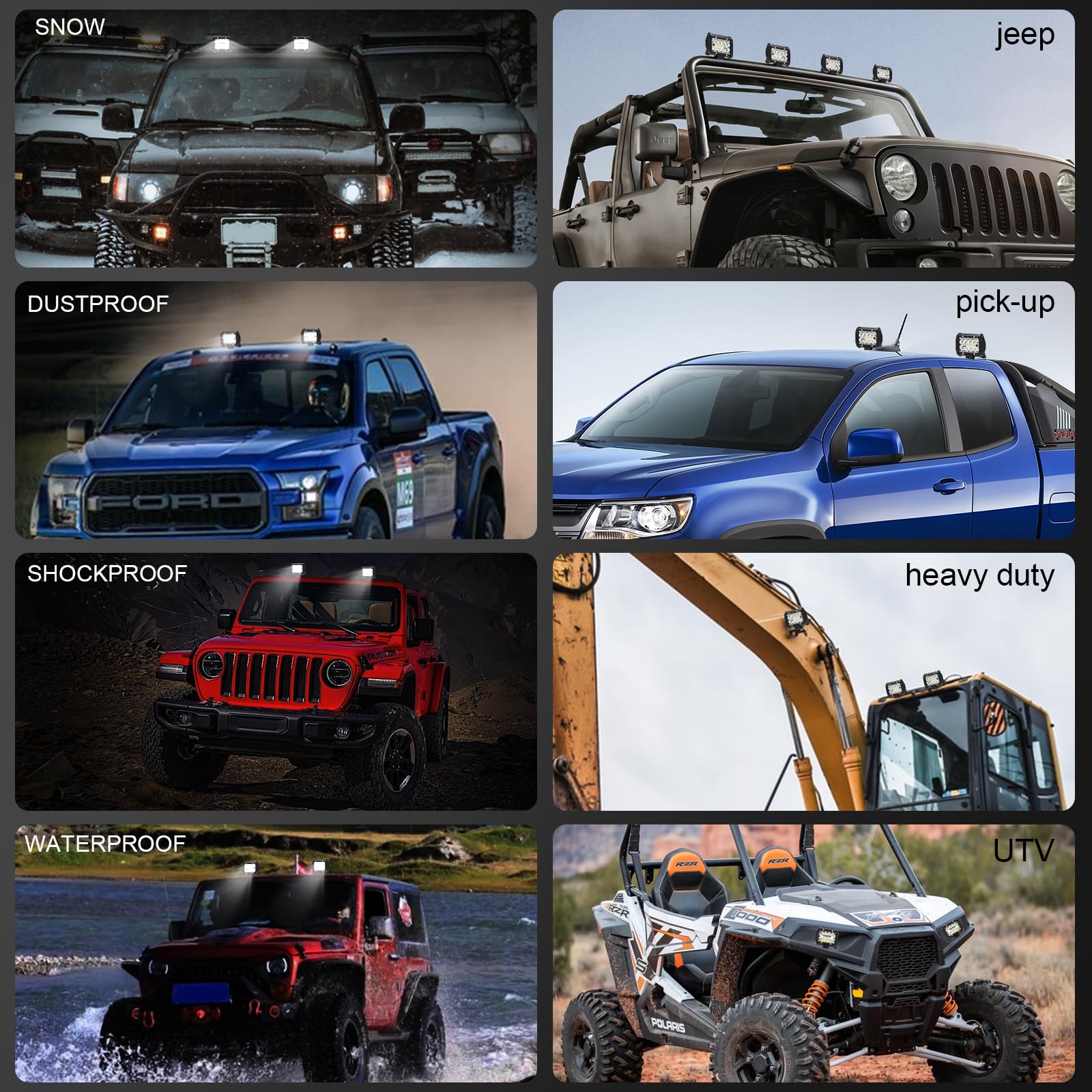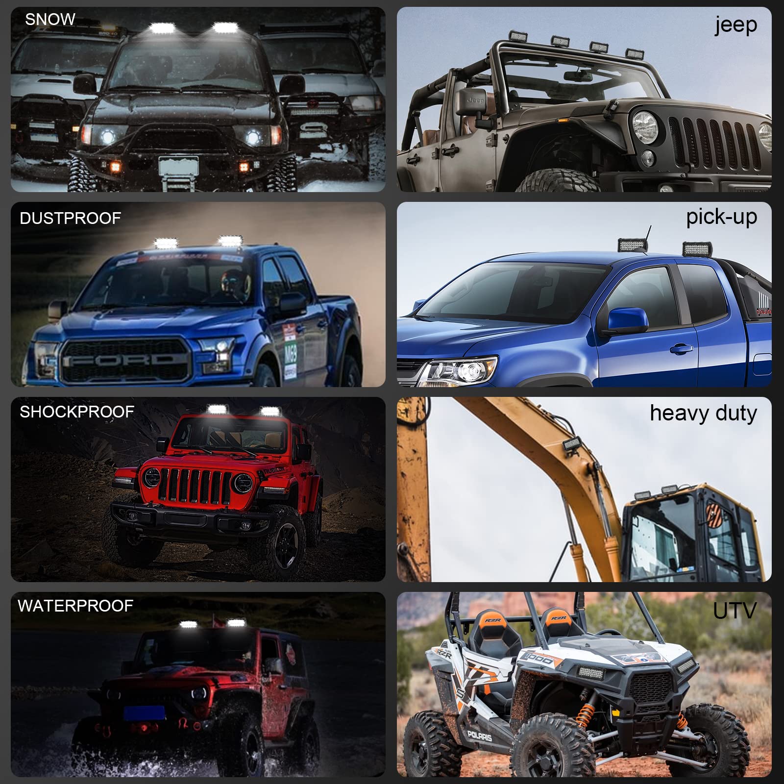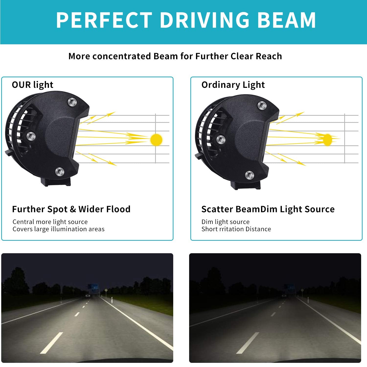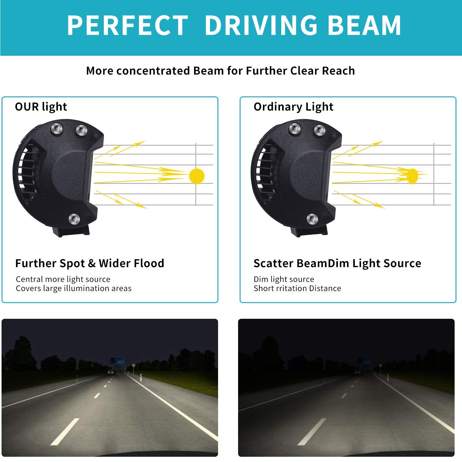 - 【Instalación Fácil y Aplicación Amplia】- El amplio voltaje de operación (9 ~ 30 V) hace que nuestras luces sean adecuadas para diferentes tipos de vehículos, por faros led de trabajo puede ser ampliamente utilizada para la mayoría de los estilos de vehículos (todoterreno, SUV, ATV, UTV) , camión, marina, motocicleta, bote, servicio pesado, etc.).