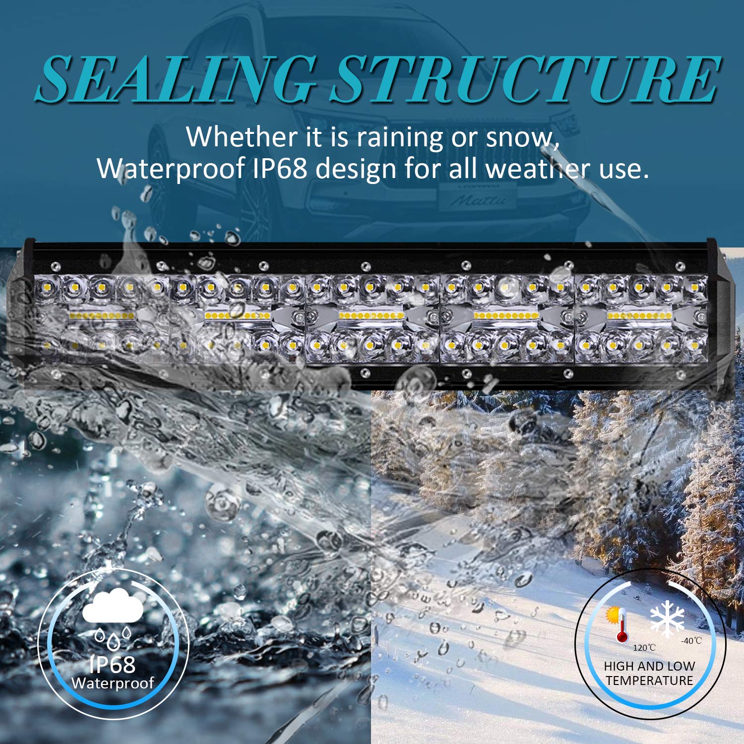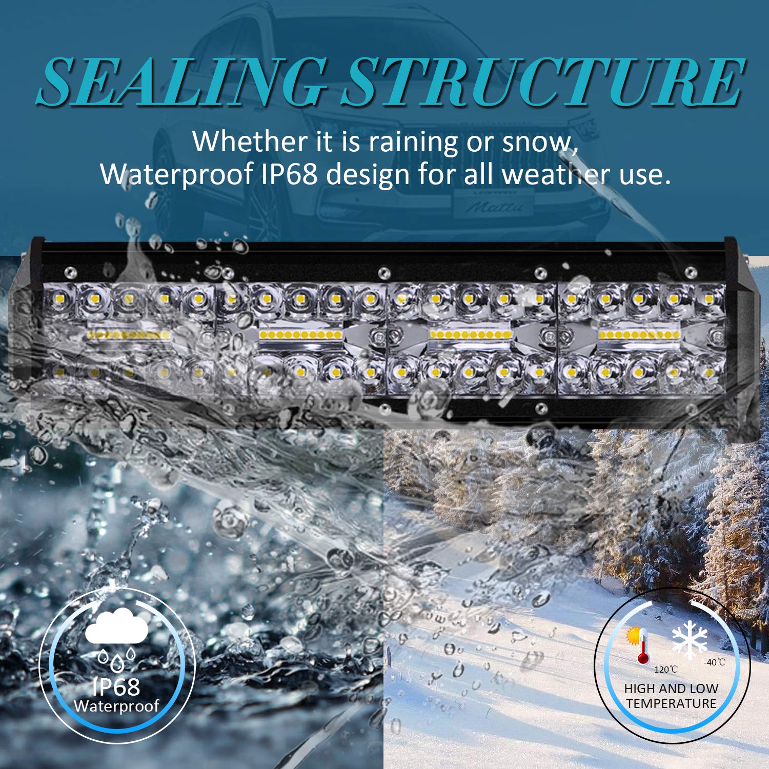 - 【Brillo Potente】 - Construido a partir de una carcasa de fundición a presión de aluminio sellada IP69K de grado militar ligero (EE. UU. MIL-810-STD) con lente Lexan a prueba de golpes para una carcasa impermeable e impenetrable. La foco led se construyó para durar, utilizando chips avanzados de calidad superior, emiten 6000K-6500K de luz blanca fría y brillante, brindando 27,000 lúmenes para una máxima visibilidad de la iluminación