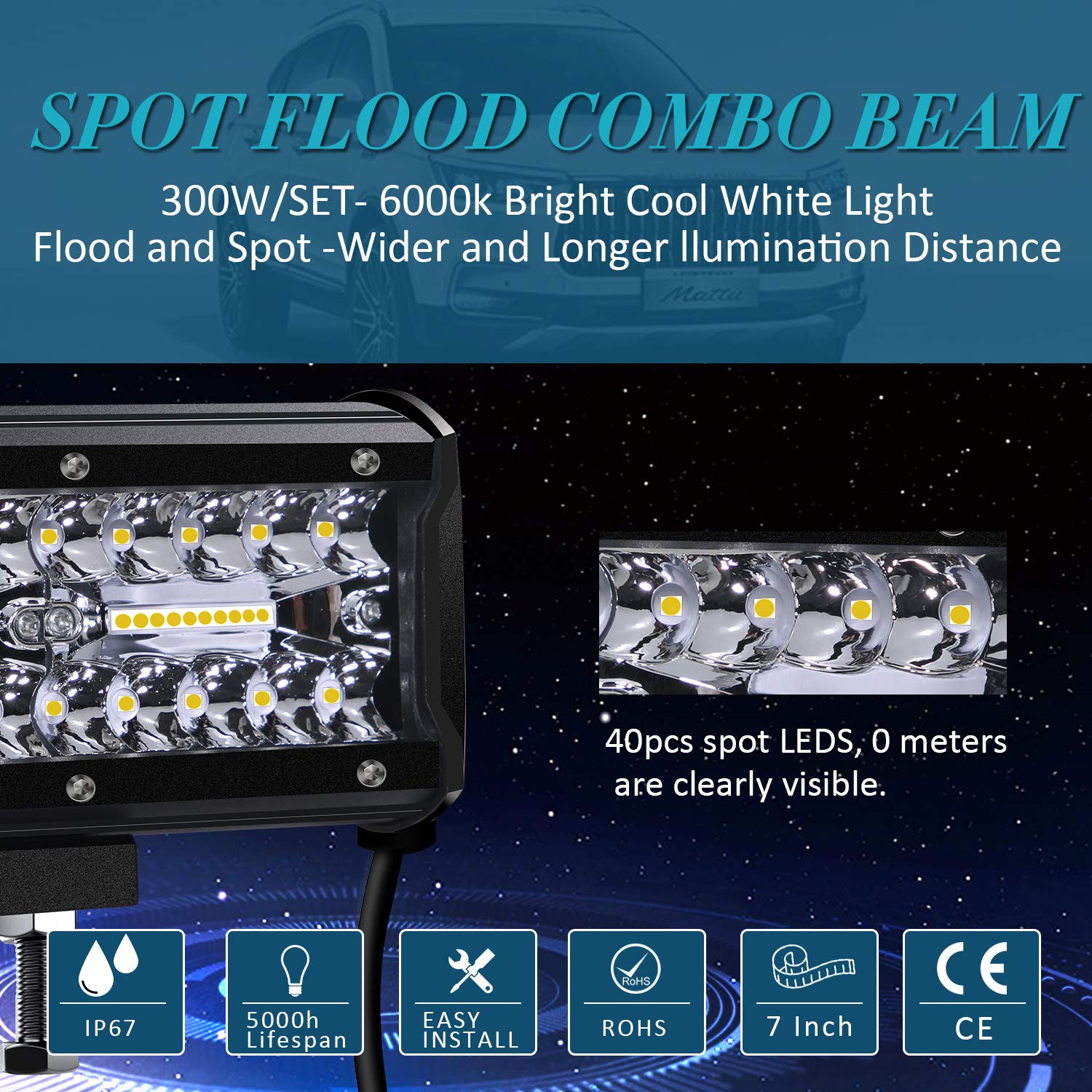 Kraumi Faro Trabajo LED de Coche 12V 7’’ 300W Faros Led 27,000LM 6000K IP67 Impermeable Off-road Foco para Moto ATV SUV Tractor Camión Barco