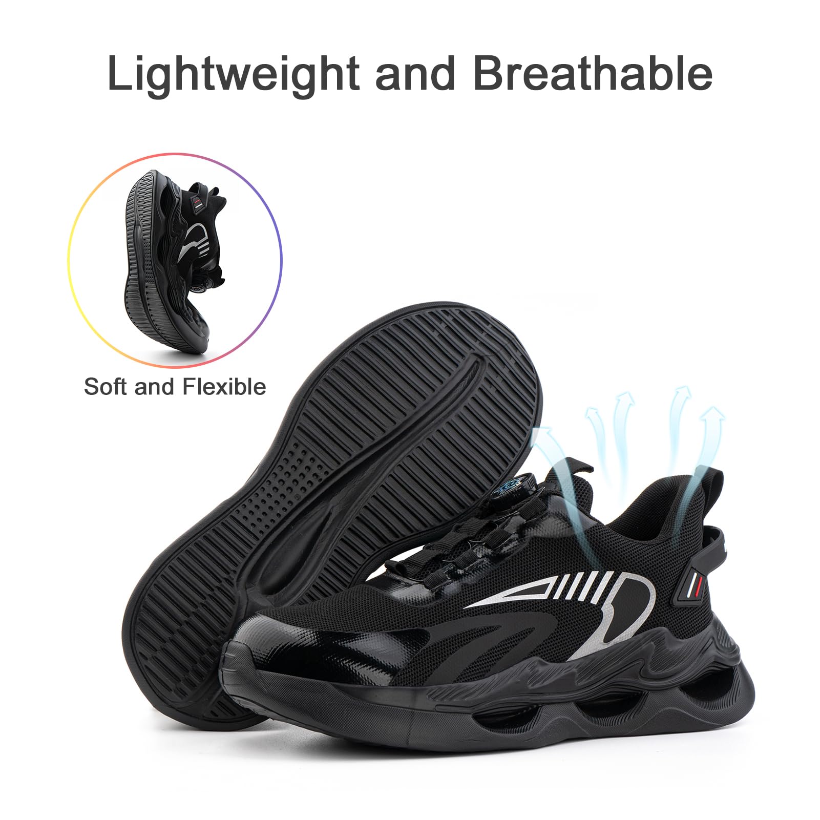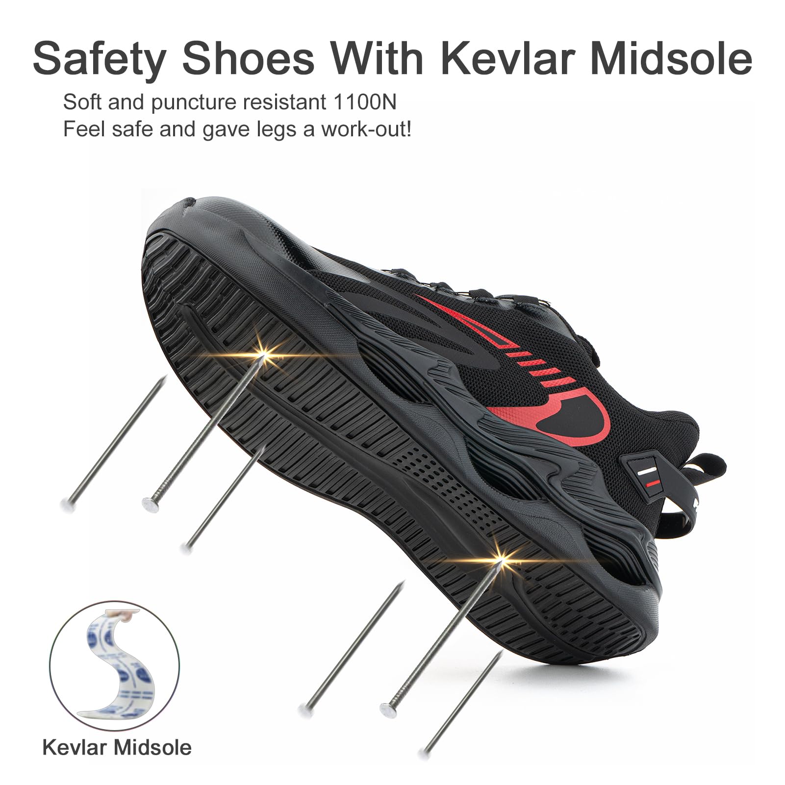 - A prueba de pinchazos: las zapatillas de deporte con puntera de Aceroestán hechas de una entresuela a prueba de pinchazos que puede proteger tus pies de objetos afilados, como clavos y barras de refuerzo