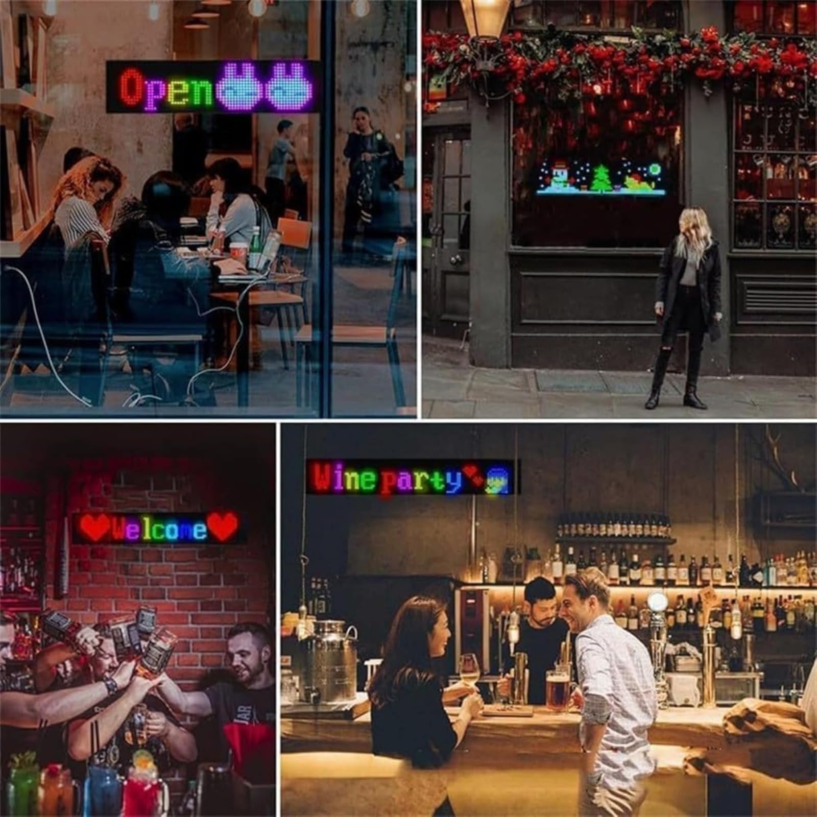 - 【Amplia gama de usos】: la pantalla LED programable para automóvil es adecuada para diversos lugares, como tiendas, hoteles, bares, restaurantes, vallas publicitarias, automóviles, conciertos y decoraciones navideñas, la matriz LED puede agregar dinámica y color a cualquier entorno.