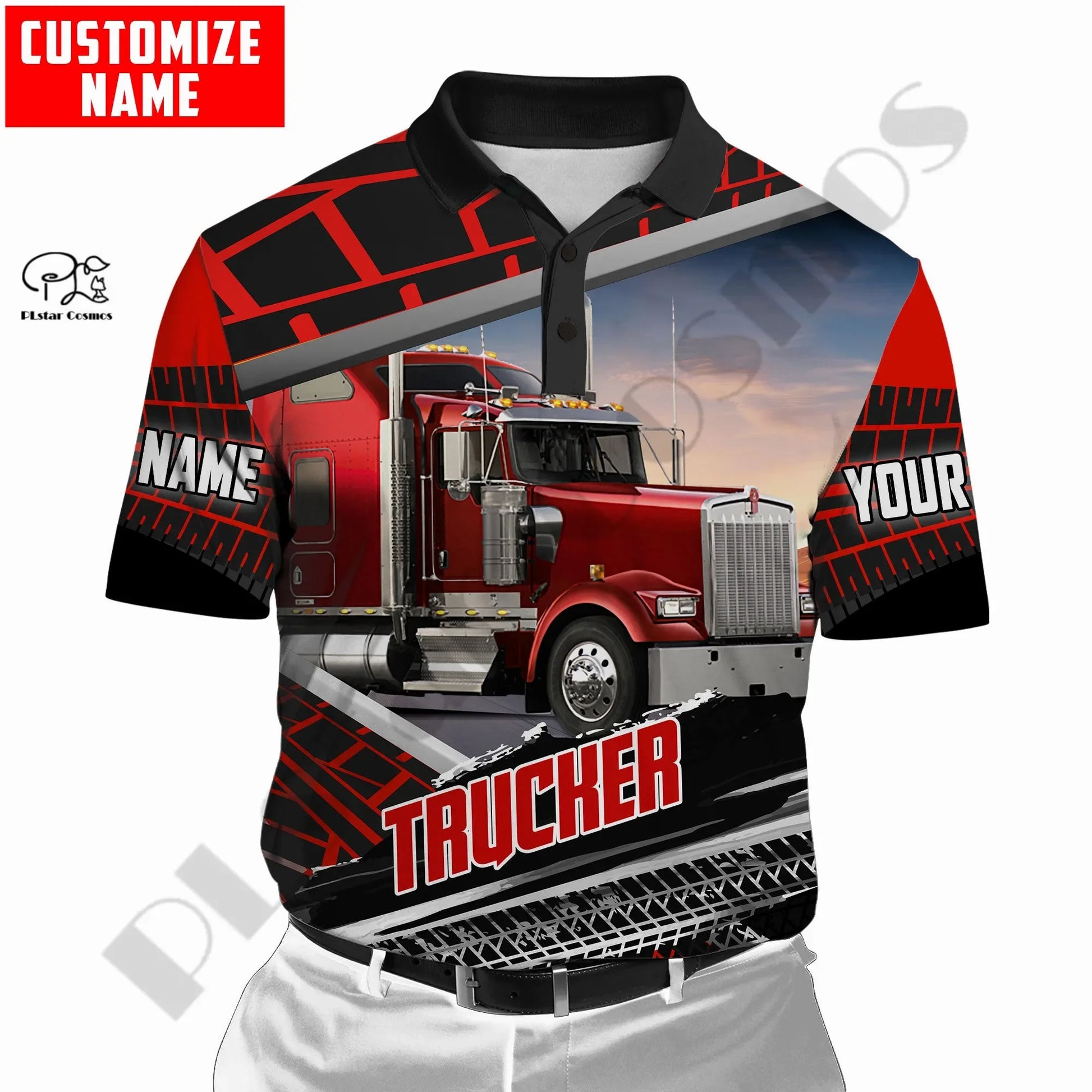 PLstarCosmos 3DPrint Truck Job Worker Polo Shirt Custom Name Team Funny Summer Harajuku Sleeveless Tees Fitness Unisex Style-1
