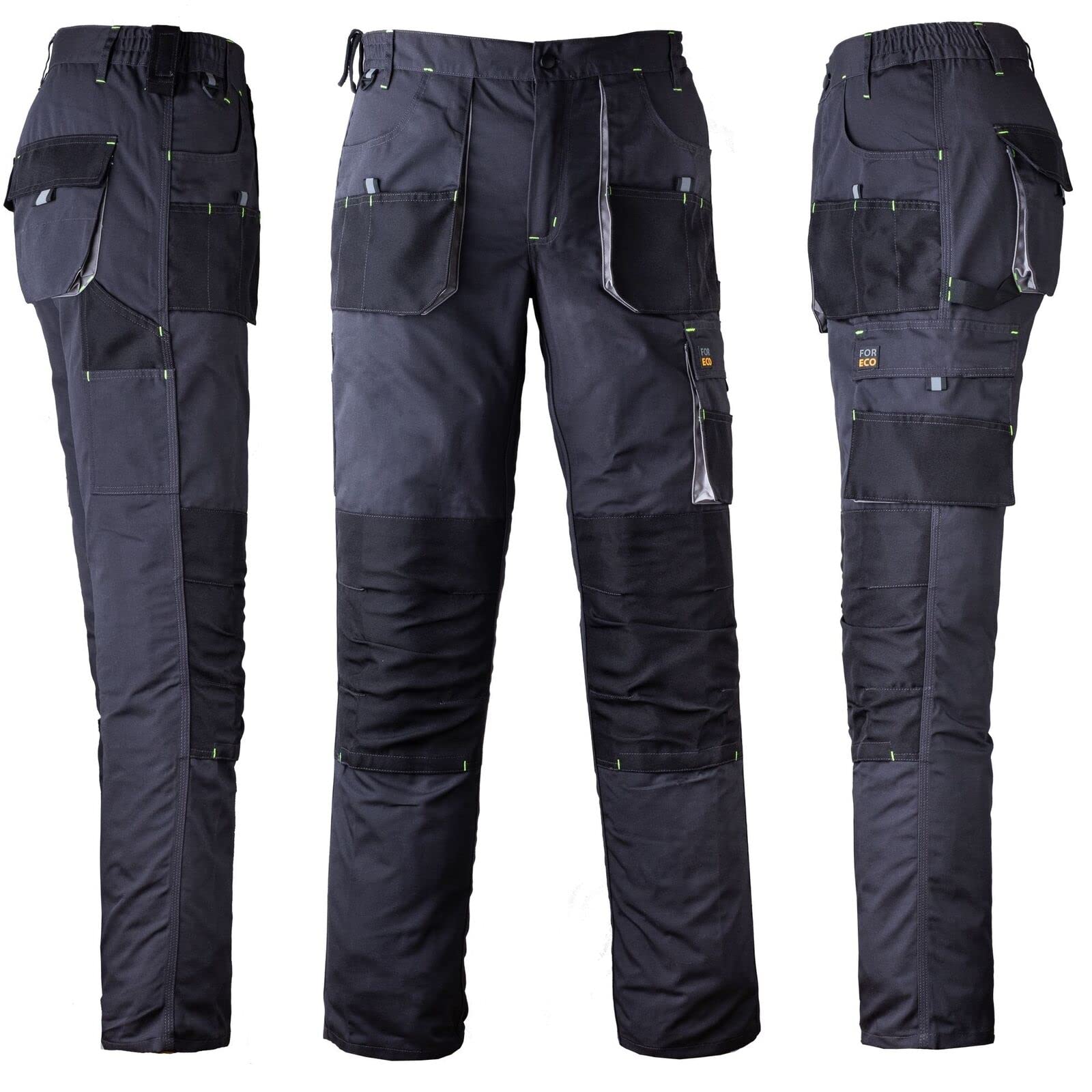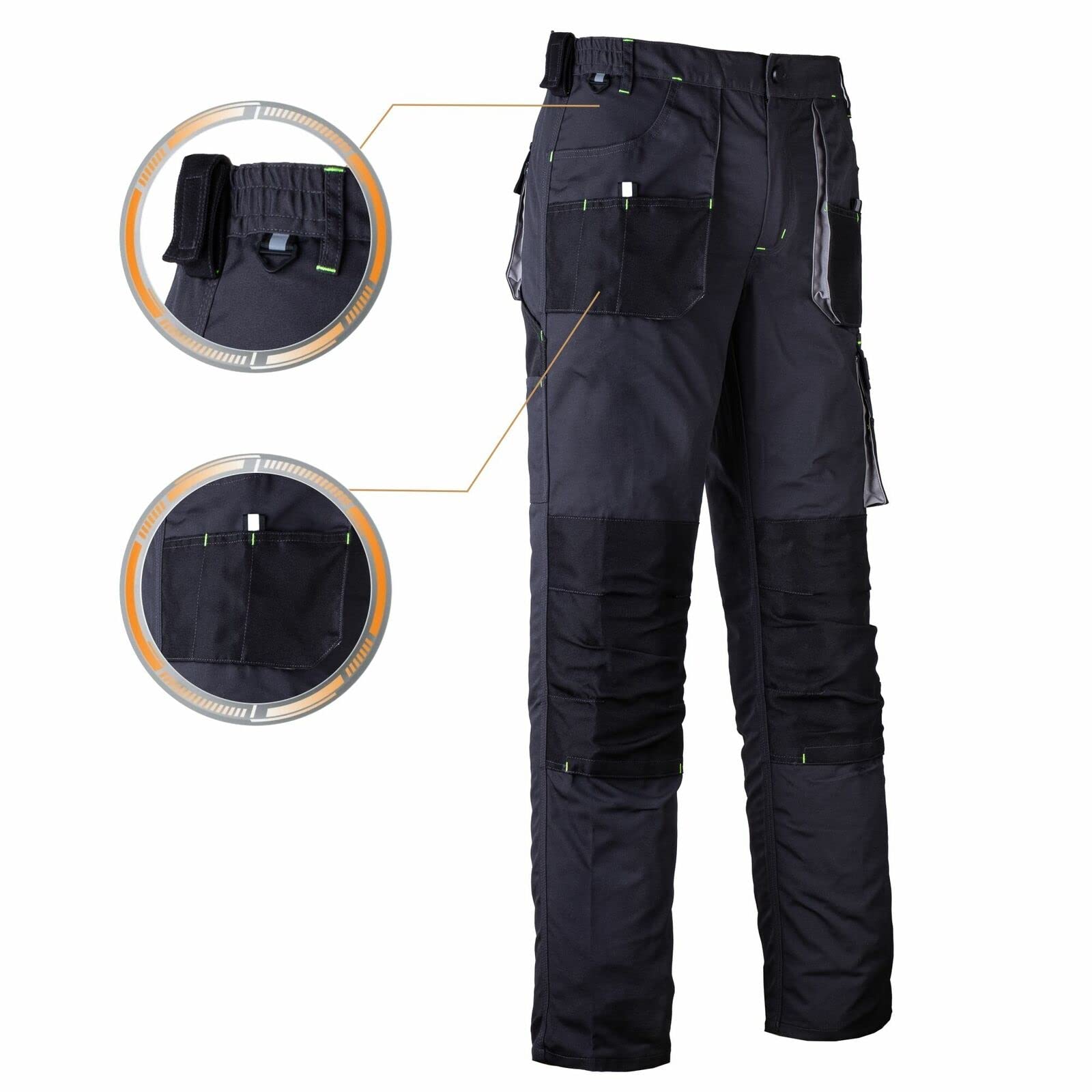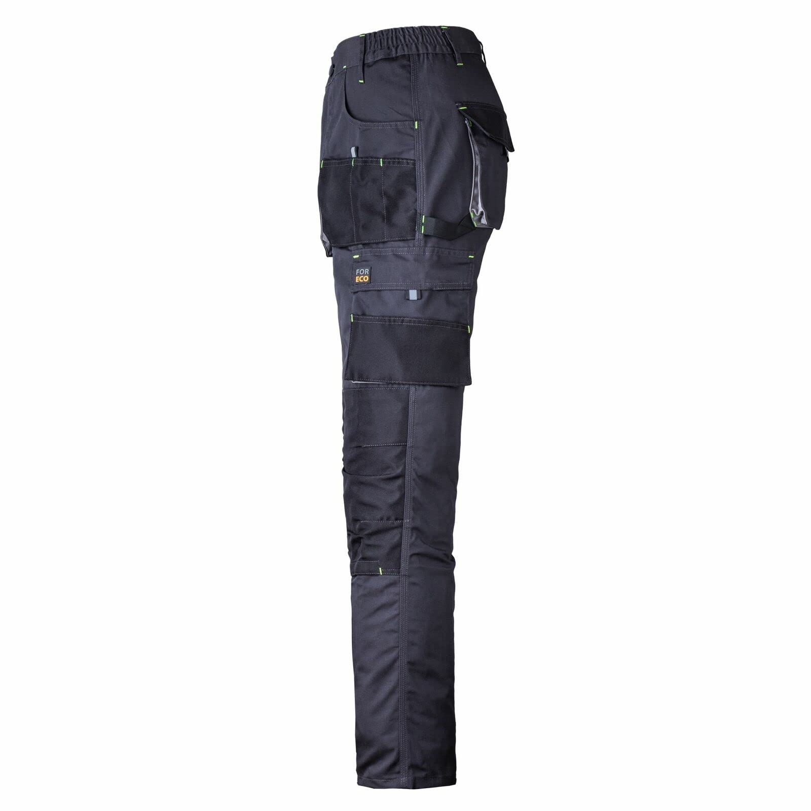 Pantalones de trabajo certificados: los pantalones de trabajo Foreco-T SBP están hechos de 80 % poliéster y 20 % algodón, y con un peso de 260 g/m2 son ideales para tareas técnicas. Excelente ajuste: los dobladillos laterales en la cintura de los pantalones aumentan la libertad de movimiento y proporcionan un mejor ajuste. Muy buena funcionalidad: los pantalones Foreco-T tienen dos bolsillos de velcro en la parte posterior y dos en los lados, un bolsillo en la pierna con cierre de velcro para accesorios y un bolsillo lateral ampliado. Tienen bolsillos en las rodillas y un clip especial para llaves. Material seguro: con certificación Oeko-Tex ® Standard 100.