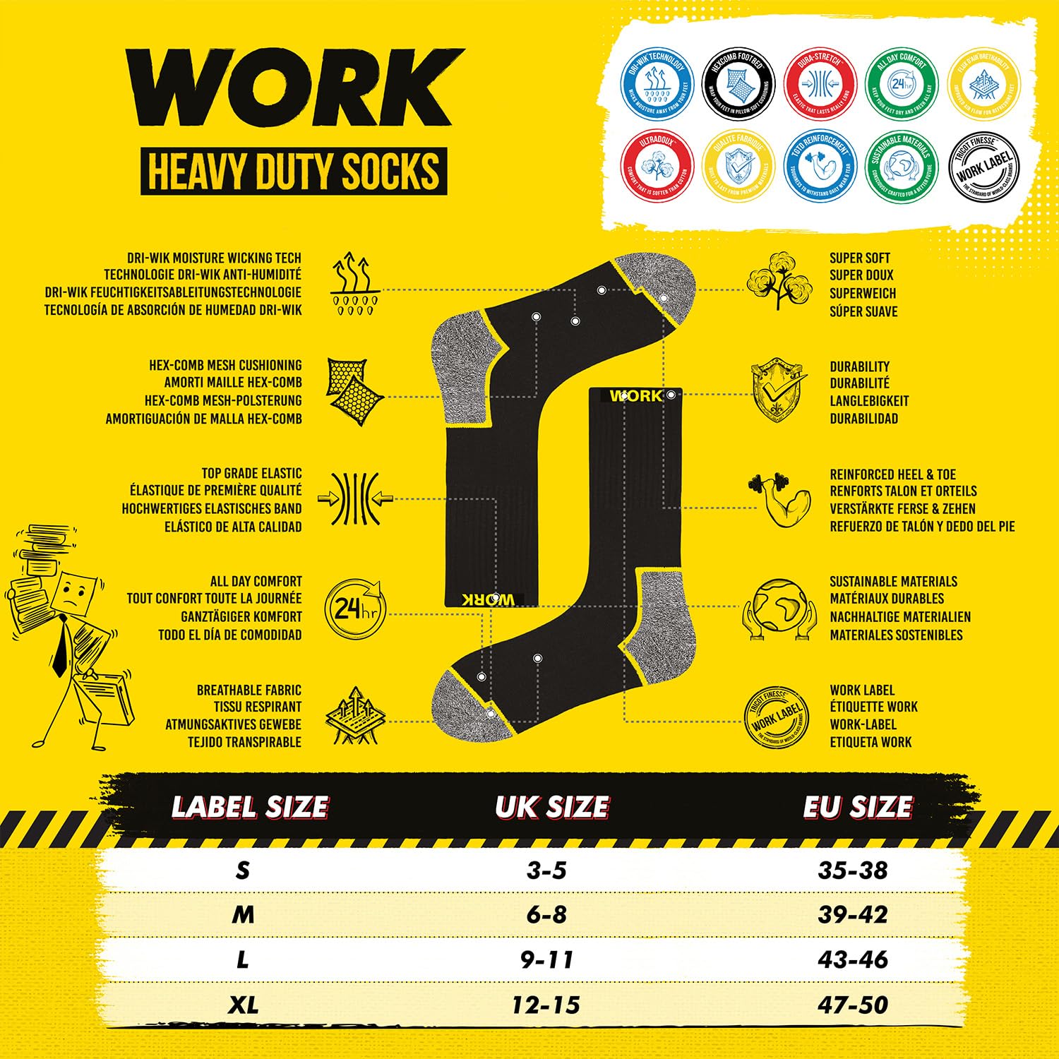 - Toda la comodidad del día: El tejido HEX-COMB con amortiguación de nuestros calcetines de trabajo proporciona una comodidad duradera durante todo el día, reduciendo la fatiga del pie y permitiéndote mantener la concentración en tu trabajo. Y con su precio asequible, nuestros calcetines de trabajo ofrecen una excelente relación calidad-precio, convirtiéndolos en la elección económica perfecta para cualquier persona que necesite calcetines de trabajo de alta calidad.