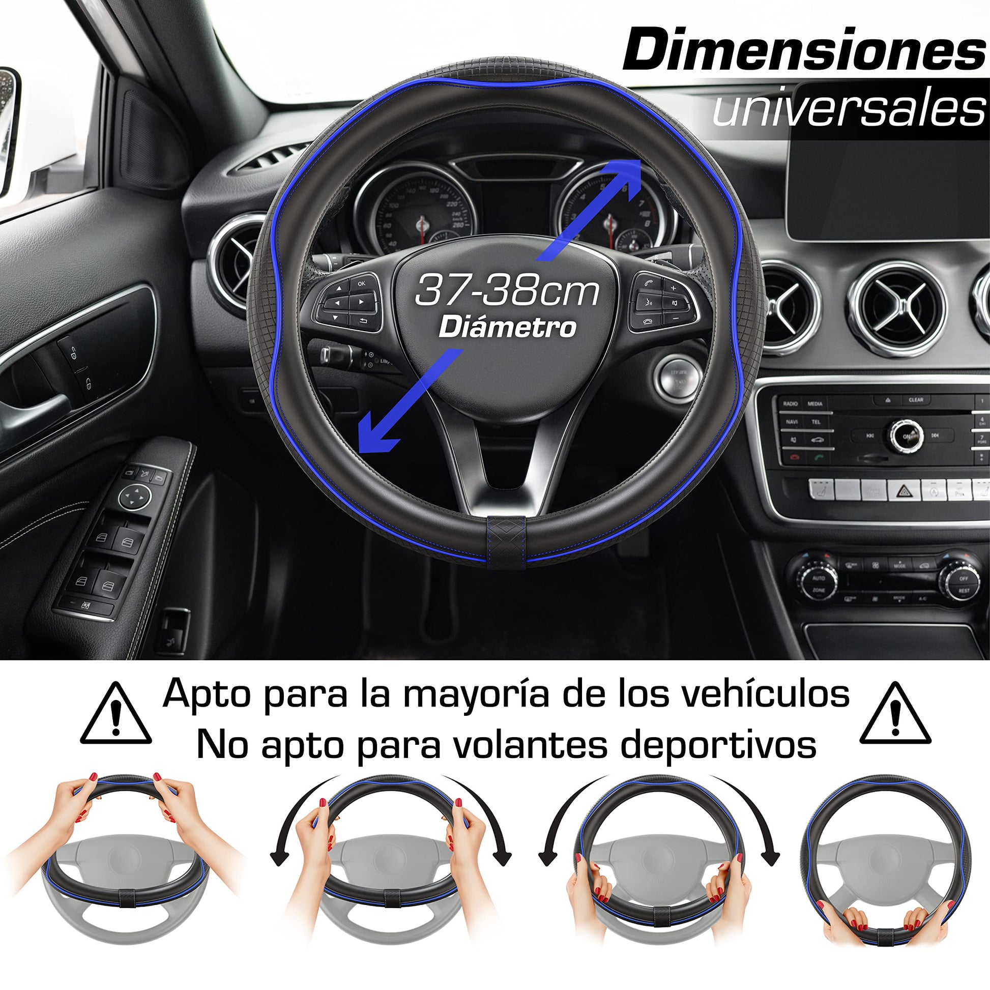 Upgrade4cars Funda Volante Coche Azul Negro Universal Poli-Piel | Cubre 37-38 cm Diámetro Exterior | Accesorios Coches Interior Decoracion Cubierta | Ideas Regalos