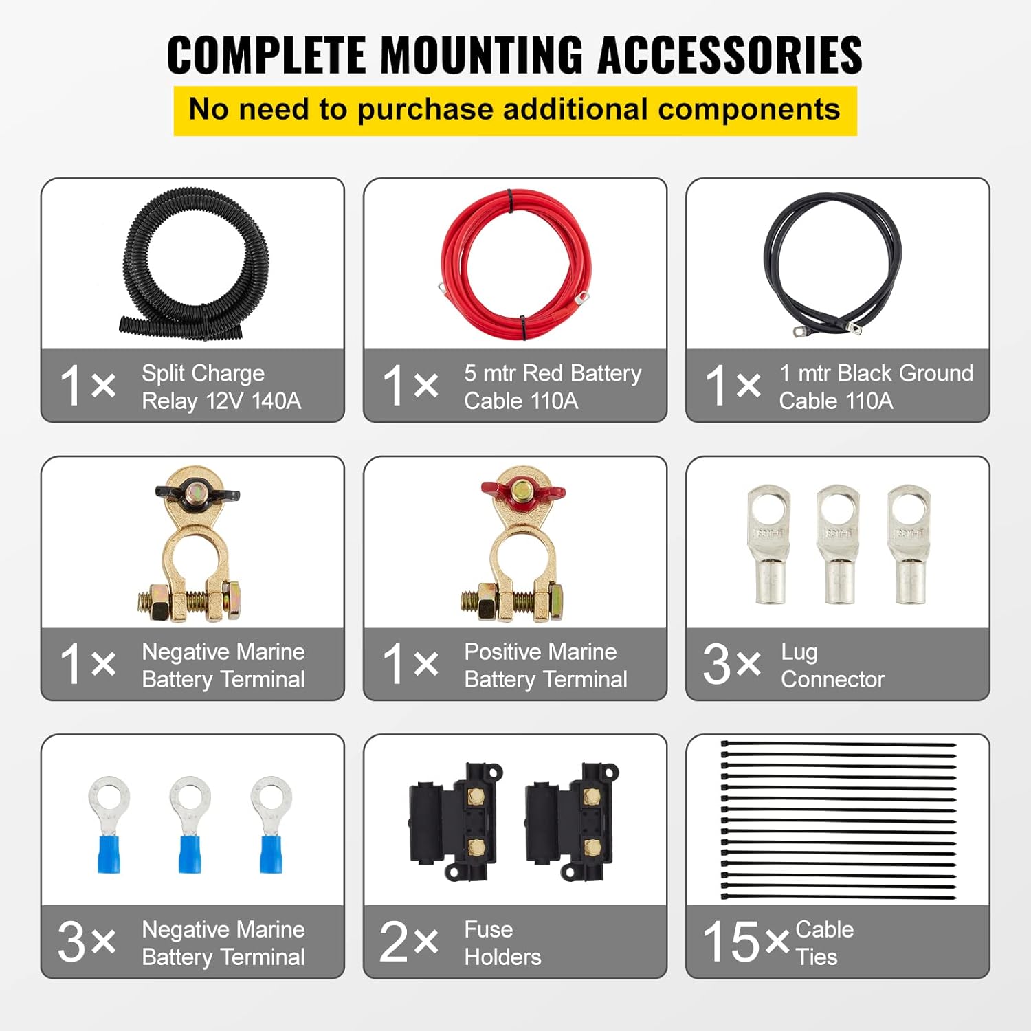 VEVOR Kit de Relé de Carga Dividida 12 V Relé Sensible al Voltaje 5 m UTV Camión