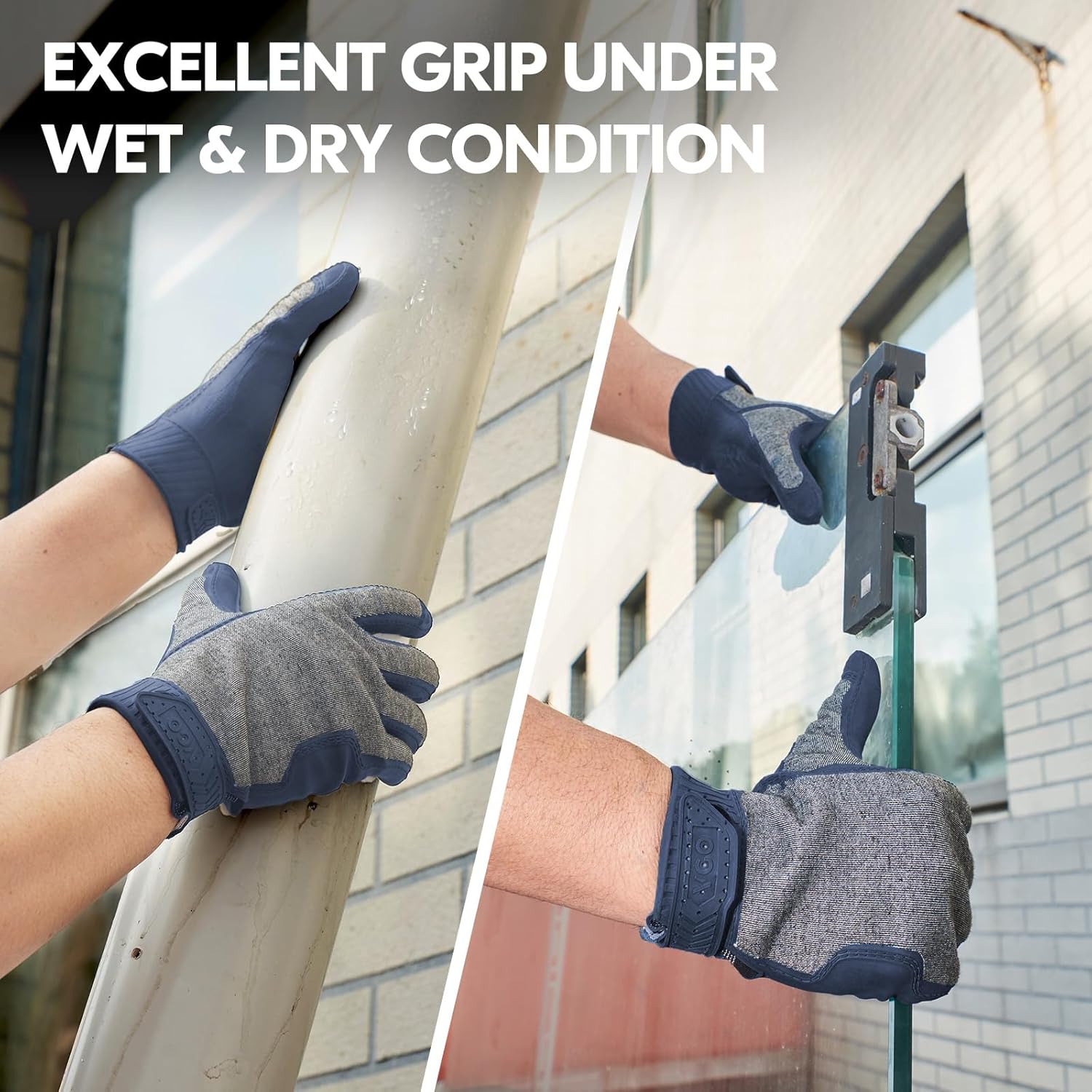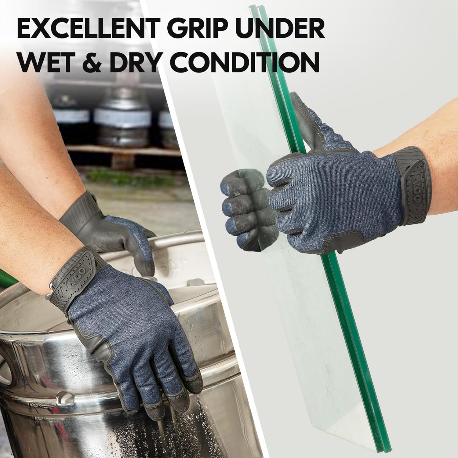 Vgo... Guantes de Trabajo Anti-Impacto TPE sin costuras, Guantes Hombres para Camioneros Carpintería Almacén Mecánico, 1 par