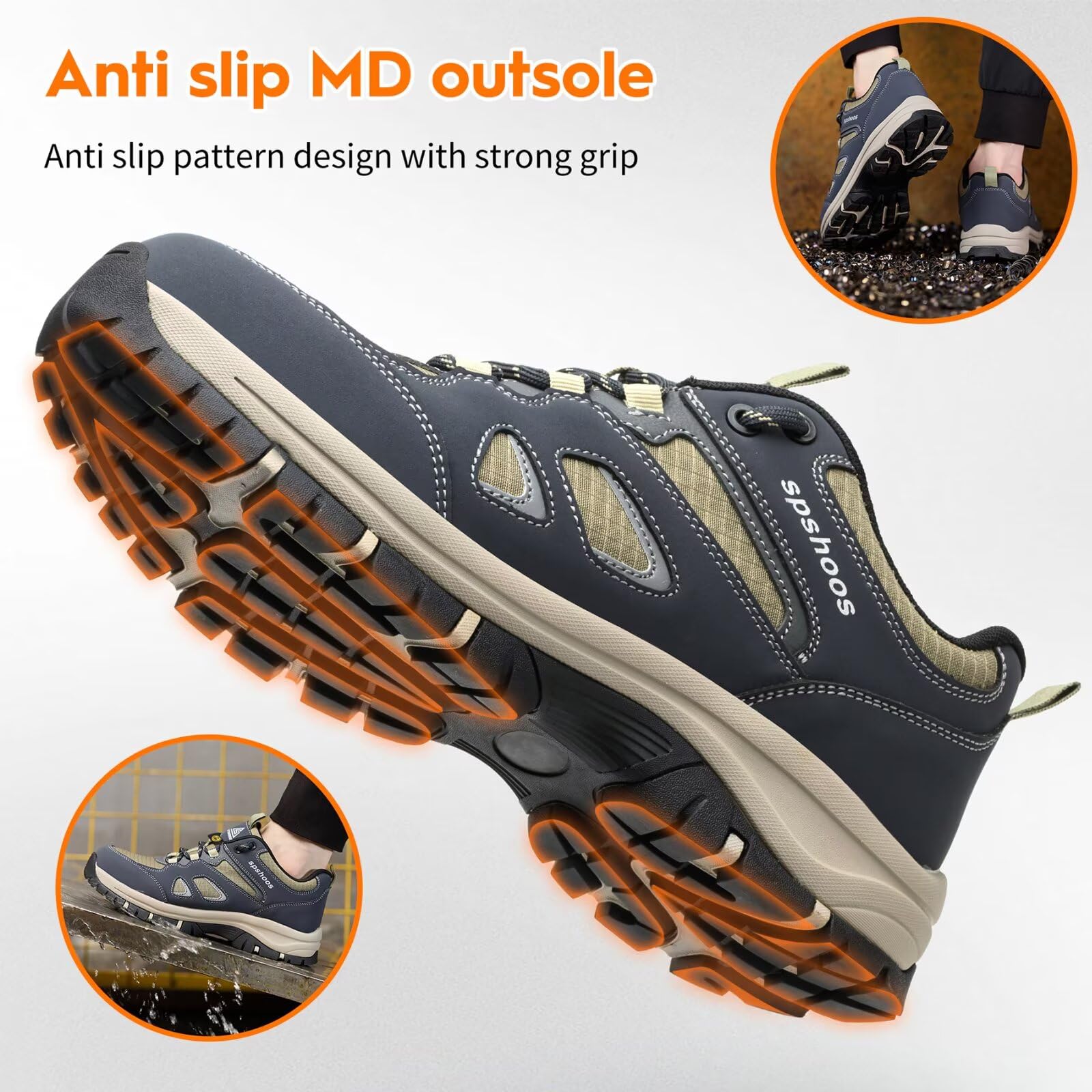 - Nivel de seguridad: SPSHOOS Zapato de seguridad cuenta con la certificación S1PL según la norma EN ISO 20345 y cumple las normas de la UE, con un certificado de clasificación de seguridad. Anti-presión y anti-pinchazos, La suela es antiestática, resistente al aceite, buena resistencia a los golpes y absorción de impactos.