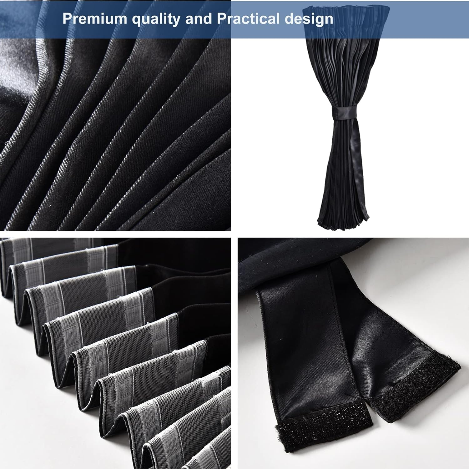 - Aplicaciones: Incluye cortinas de 2 piezas de que el tamaño es de 94.4 pulgadas (240 cm) x 35 pulgadas (90 cm) de ancho, con ganchos que se pueden unir a un vehículo grande de más de 4 toneladas, es una buena opción para descansar en el automóvil o dormido