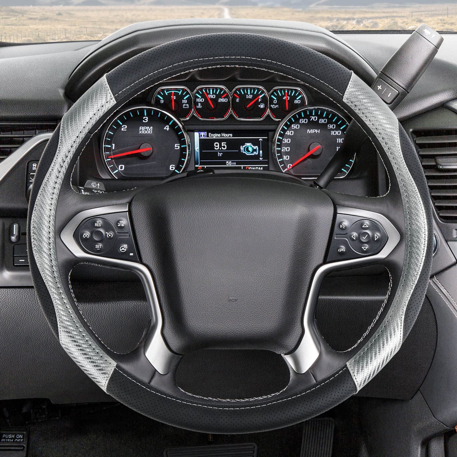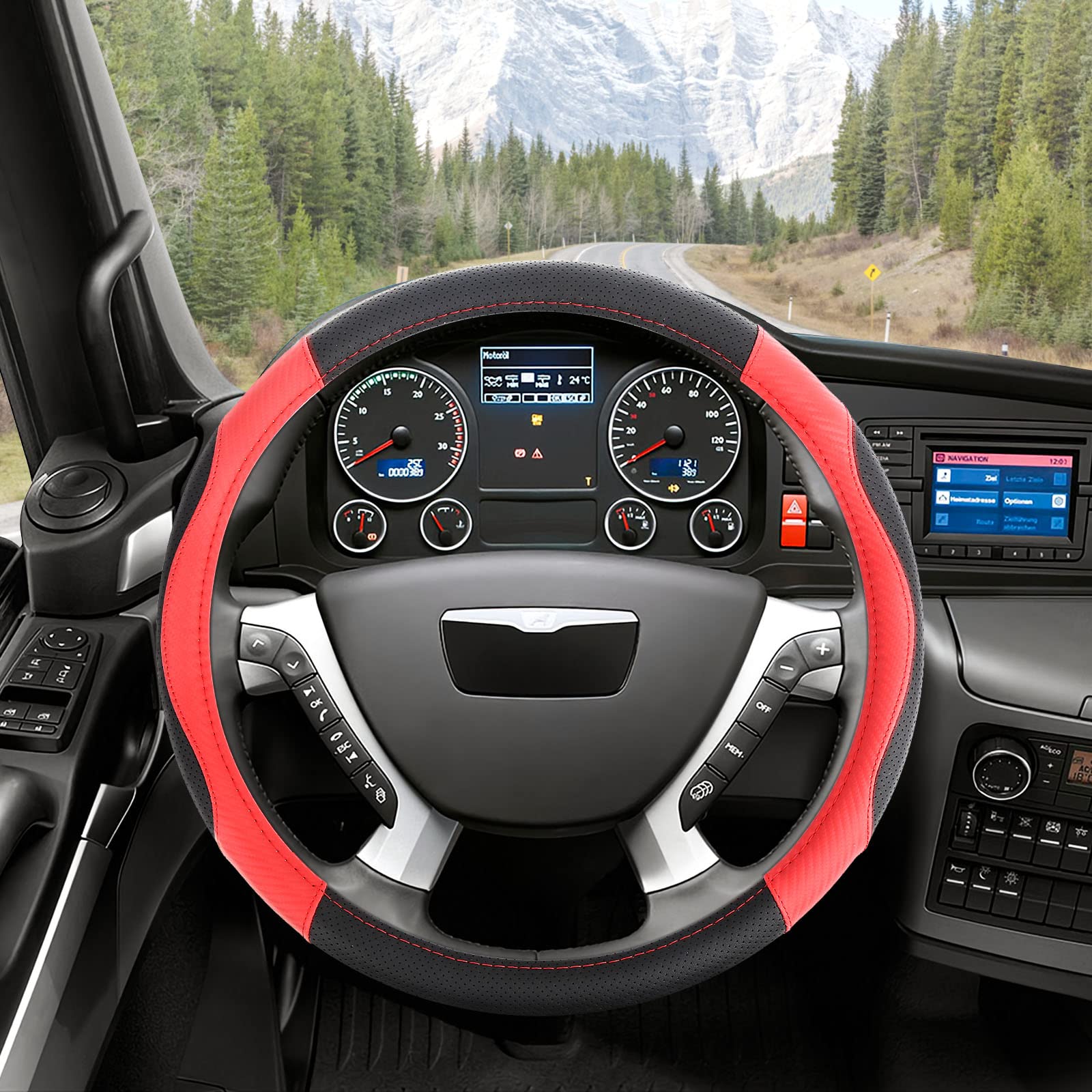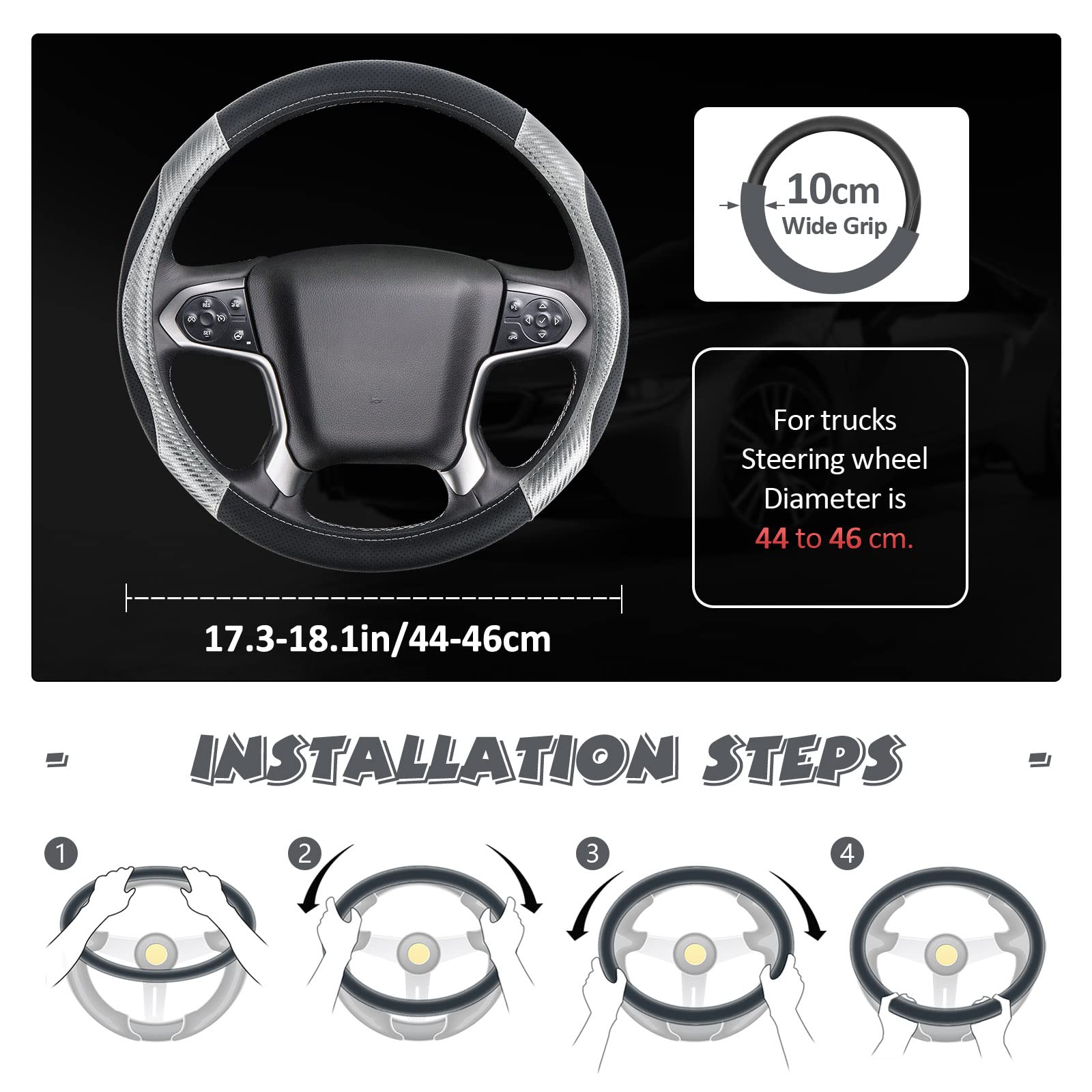 - Tamaños diseñados para camiones: Esta cubierta del volante es adecuado para camiones con un tamaño de 44-46cm. Por favor, mida el tamaño de su volante antes de la compra